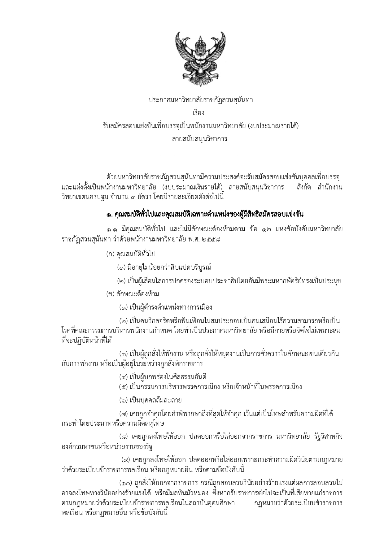 Announcement of recruitment of university employees (revenue budget) for academic support