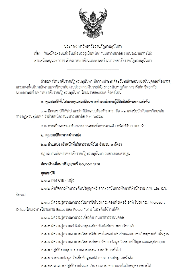 ประกาศรับสมัครสอบแข่งขันเพื่อบรรจุเป็นพนักงานมหาวิทยาลัย (งบประมาณเงินรายได้) สายสนับสนุนวิชาการ สังกัด วิทยาลัยนิเทศศาสตร์ ตำแหน่ง เจ้าหน้าที่บริหารงานทั่วไป จำนวน 1 อัตรา