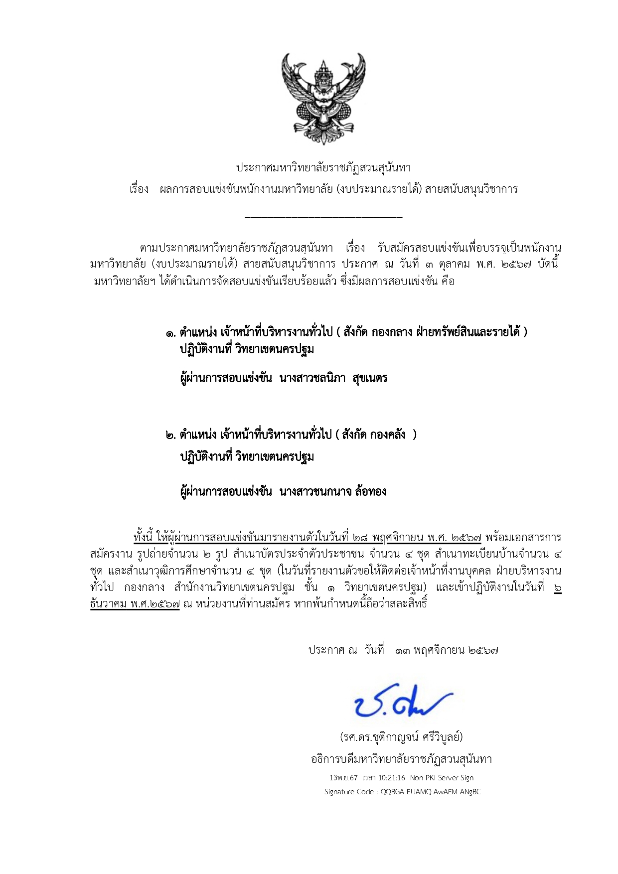 Home > Announcement > Job Advertisement > Announcement of the results of the competitive examination for employment as university employees under the Nakhon Pathom campus.