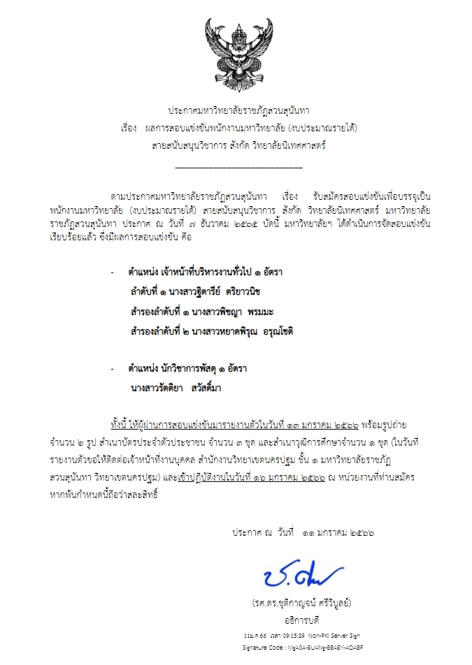 ประกาศ ผลการสอบแข่งขัน พนักงานมหาวิทยาลัย (งบประมาณเงินรายได้) สายสนับสนุนวิชาการ สังกัด วิทยาลัยนิเทศศาสตร์ ตำแหน่ง เจ้าหน้าที่บริหารงานทั่วไป จำนวน 1 อัตรา และตำแหน่ง นักวิชาการพัสดุ จำนวน 1 อัตรา