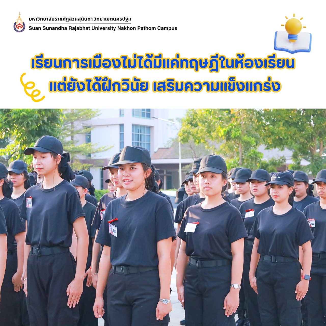 The College of Politics and Government, Suan Sunandha Rajabhat University, Nakhon Pathom Campus, emphasizes teaching and learning that combines both theoretical knowledge and practical experience. This approach allows students to develop their potential in various areas while strengthening essential skills, knowledge, and real-world experience.