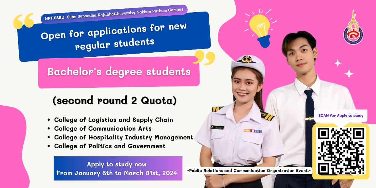 + "Lignum Vitage" flower, the symbol of Suan Sunandha Rajabhat University.