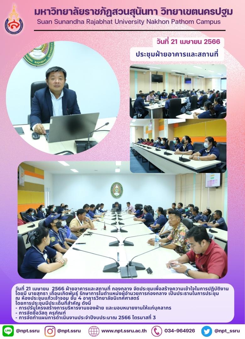 On Friday, 21 April 2023 – Mr. Suttha Thueankerdphan, Acting Director of General Affairs Division chaired the meeting at Kaew Chao Chom Meeting Room, the 4th floor, College of Communication Arts. The meeting focused on:
