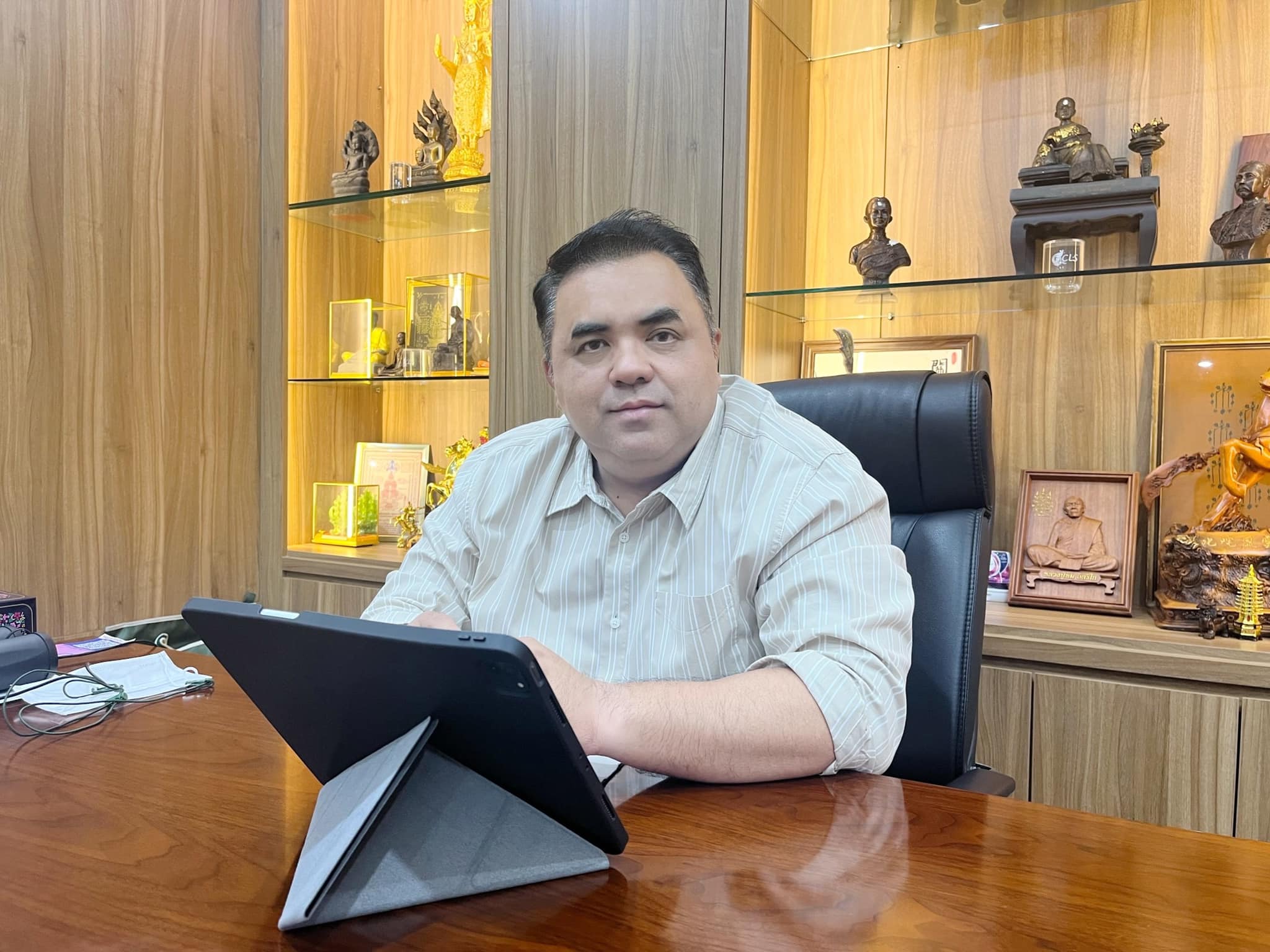 On Monday, 26 June 2023 - Asst. Prof. Dr. Komson Sommanawat, Vice President for Nakhon Pathom Campus and Miss Saowanee Kumnerdrat, Acting Director of Office of the Nakhon Pathom Campus participate in the meeting to clarify the revenue implementation for Fiscal year 2023 to the the Committee to Follow Up, Examine and Evaluate University Implementation via Google meet.
