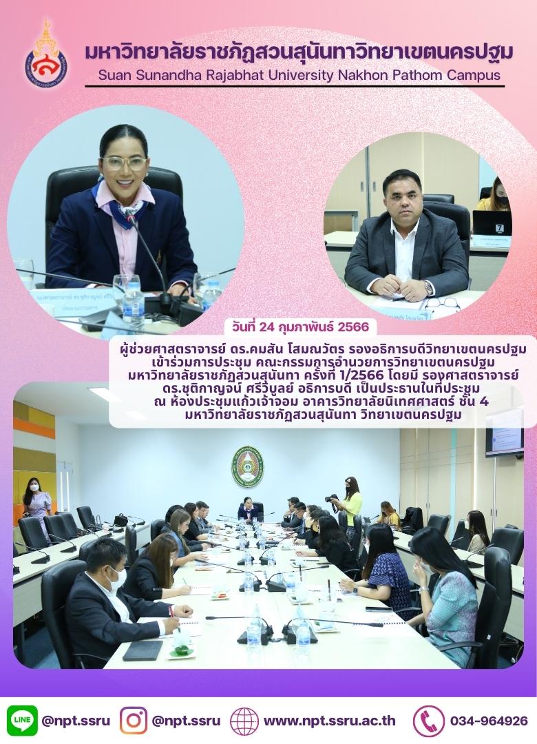 On Friday, 24 February 2023 - Asst. Prof. Dr. Komson Sommanawat, Vice President for Nakhon Pathom Campus joined the Nakhon Pathom Campus Directing Board Meeting No. 1/2023 where presided over by Assoc. Prof. Dr. Chutikarn Sriviboon, President at Kaew Chao Chom Meeting Room, College of Communication Arts, SSRU Nakhon Pathom Campus. The meeting focused on: