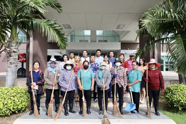 On Friday, 21 October 2023 – General Affairs Division, Office of the Nakhon Pathom Campus set the 8th Big Cleaning Day, led by Mr. suttha Thueankirdphan, Acting Director of General Affairs Division along with staff, house keepers and workers joined together to clean the buildings, grandstand and multi-purpose laboratory, including entrance gate of the campus, and also promoting teamwork.