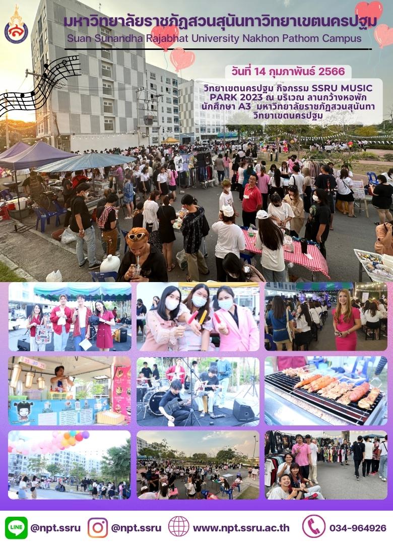 On Tuesday, 14 February 2023 at 16:30 – 20:30 hrs. – Nakhon Pathom Campus organized the SSRU Music Park 2023 at field of dormitory A3 where Miss Saowanee Kamnerdrat, Acting Director of Office of the Nakhon Pathom Campus was the chair. The program included: