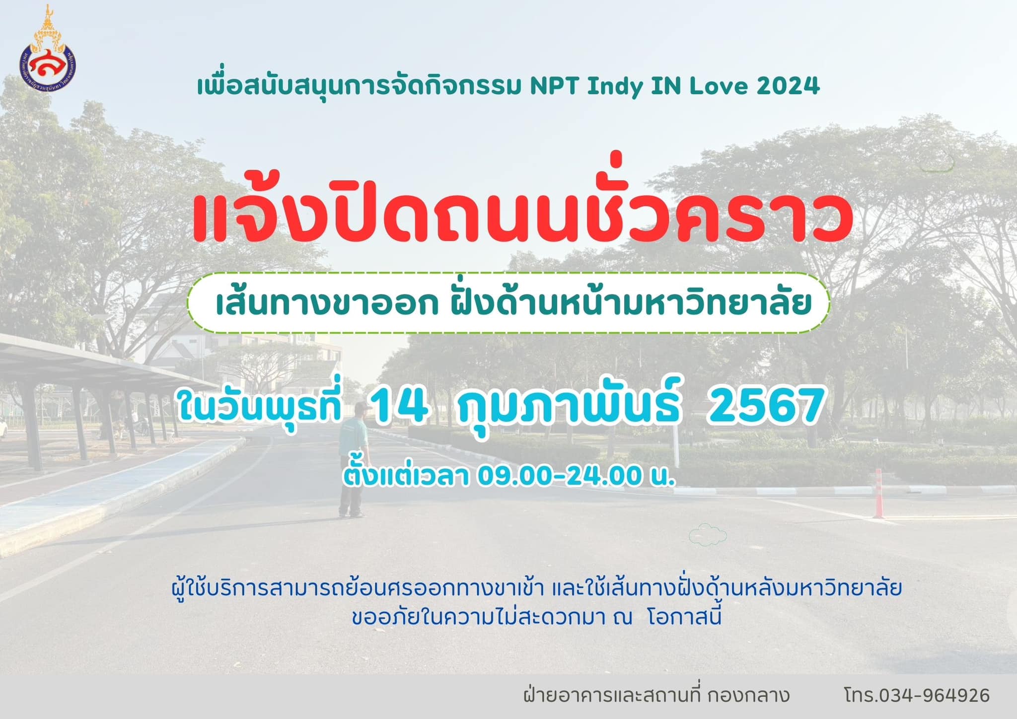 The Buildings and Landscape Department, General Affairs Division announced for closing road on Wednesday, 14 February 2024 at 9:00 - 12:00 hrs.