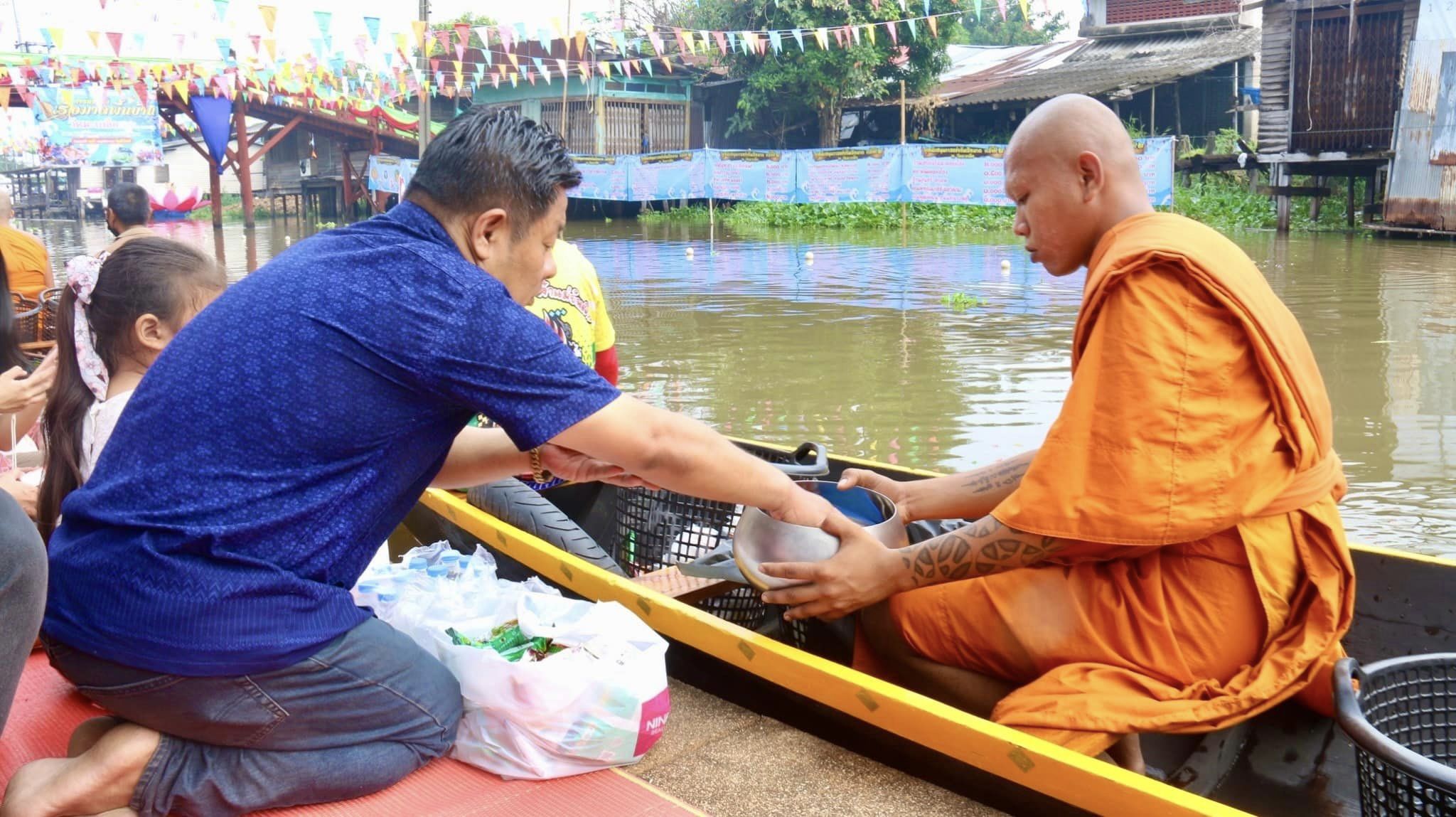On Friday, November 15, 2024, Mr. Suttha Thuankerdpan, Director of the Central Division, along with staff from the Nakhon Pathom Campus office, participated in the Waterway Almsgiving Preservation Project and the Promotion of Thai Cultural Customs and Traditions for the fiscal year 2025, as well as the Loi Krathong Preservation Project for the fiscal year 2025, held at Wat Makleua in Phutthamonthon District, Nakhon Pathom Province. This participation aligns with Sustainable Development Goal (SDG) 11: Sustainable Cities and Communities. The activities represent a collaboration between the university and the surrounding community, fostering positive relationships through joint initiatives. These efforts contribute to the maintenance of traditions, customs, and local wisdom, as well as the preservation and continuation of Thailand's rich culture and traditions for future generations.