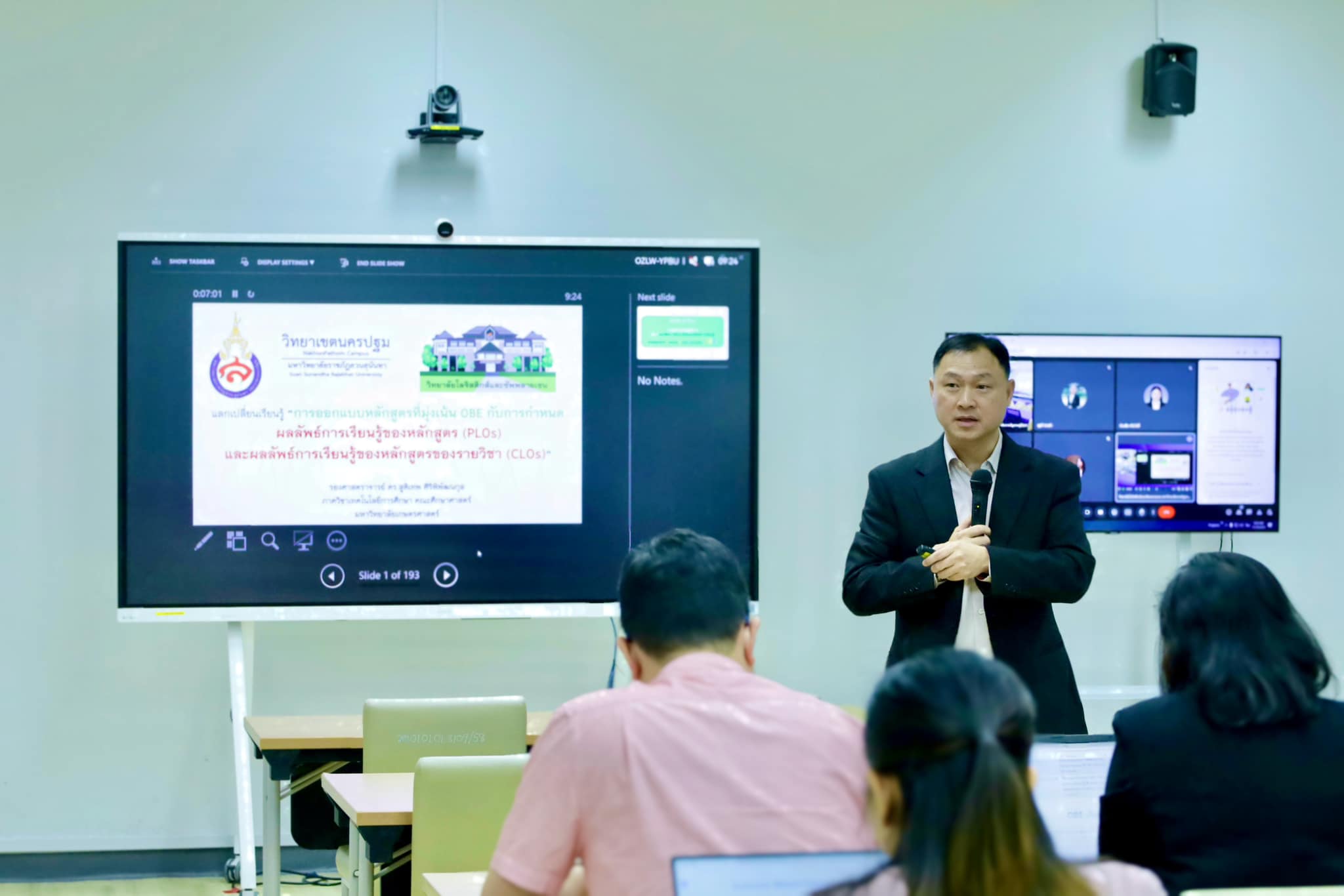 A workshop on Outcome-Based Education (OBE) curriculum design was conducted by the College of Logistics and Supply Chain for the academics and staff at Suan Sunandha Rajabhat University's Nakhon Pathom Campus. Students will be able to see their future more clearly and instructors will be forced to consider their students as the most essential thing. Additionally, it will serve as a conduit between instructors and staff to decide on and plan a strong curriculum that will help students reach their desired learning outcomes.