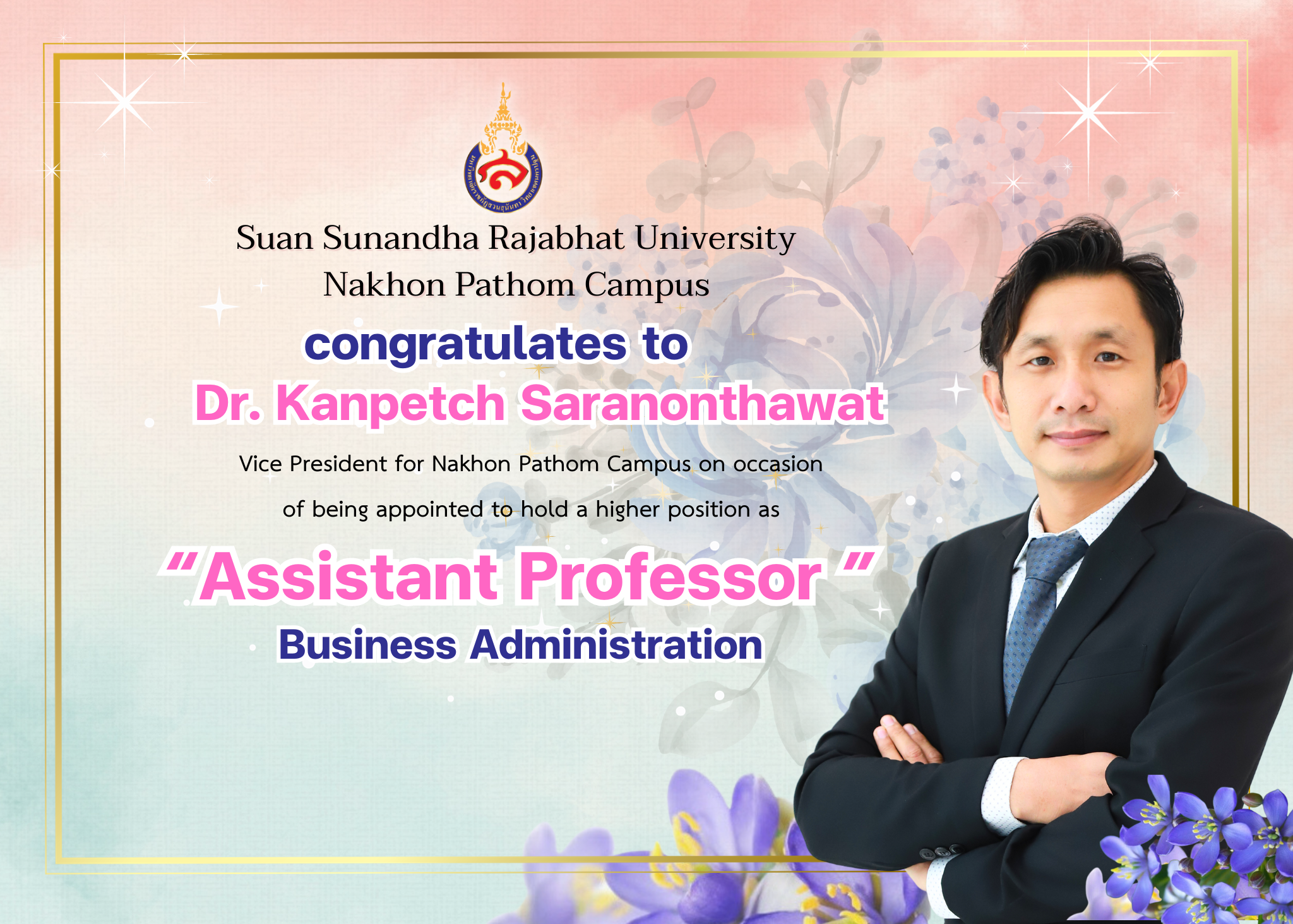 + "Lignum Vitage" flower, the symbol of Suan Sunandha Rajabhat University.