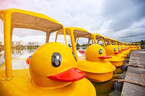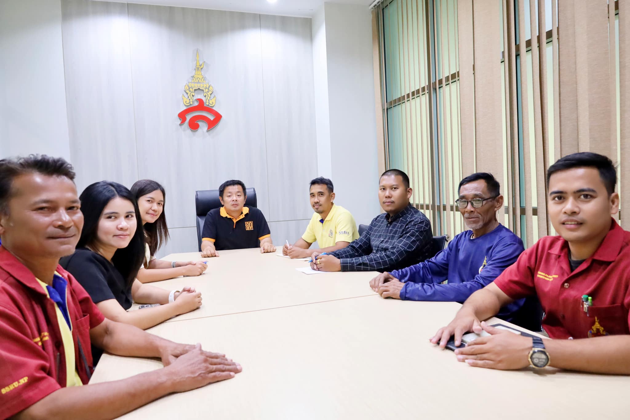 Mr. Suttha Theaunkerdphan, Director of General Affairs Division chaired the meeting to inform operational guidelines of landscape and create check-in point at SSRU Nakhon Pathom Campus by bringing bright yellow duck boats for students, with Miss Sasiwimon Maneewong, Acting Head of Buildings and Landscape Department and staff, at Office of the Nakhon Pathom Campus Meeting Room.
