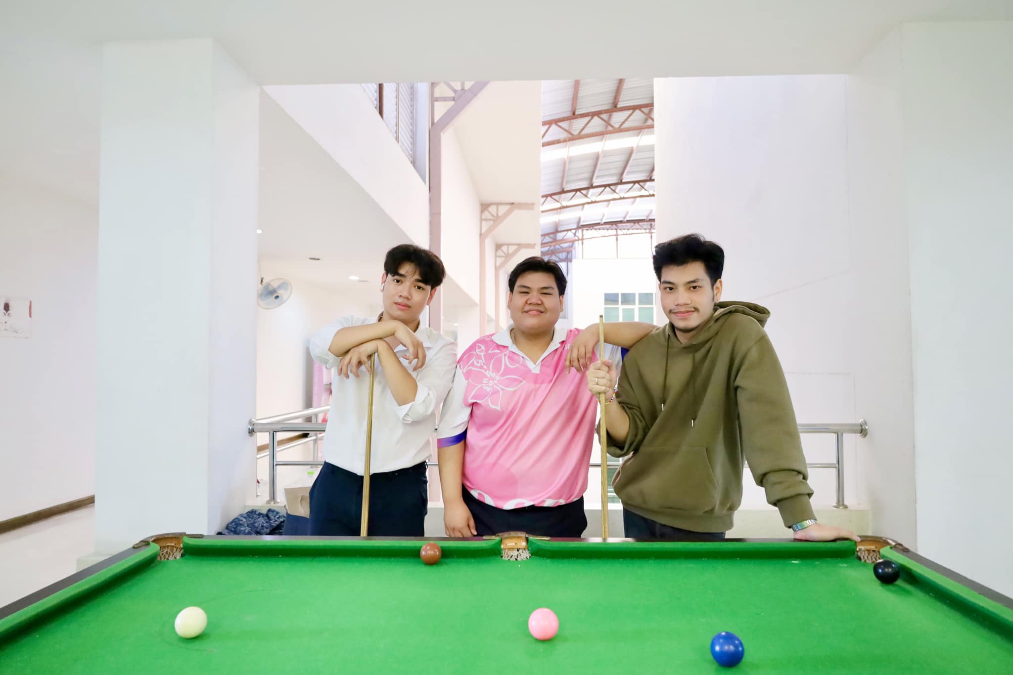 Snooker is a sport that not only trains accuracy, but also helps train concentration skills and practice planning, making us calm and focused on learning more effectively. Anyone who would like to try playing snooker, you can test your skills at the College of Hospitality Industry Management Building, Suan Sunandha Rajabhat University Nakhon Pathom Campus.