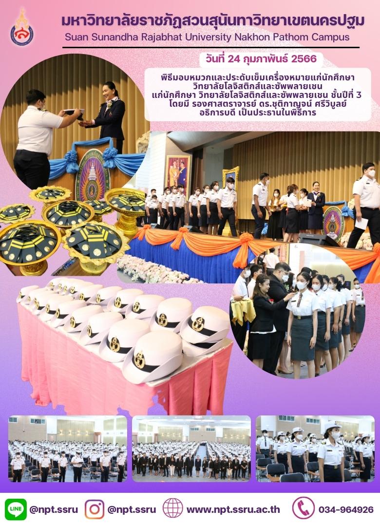On Wednesday, 24 February 2023 - College of Logistics and Supply Chain organized the Cap and Badge Ceremony for College of Logistics and Supply Chain the 3nd year students where presided over by Assoc. Prof. Dr. Chutikarn Sriviboon, President at Multipurpose and Food Center Building. The students included: