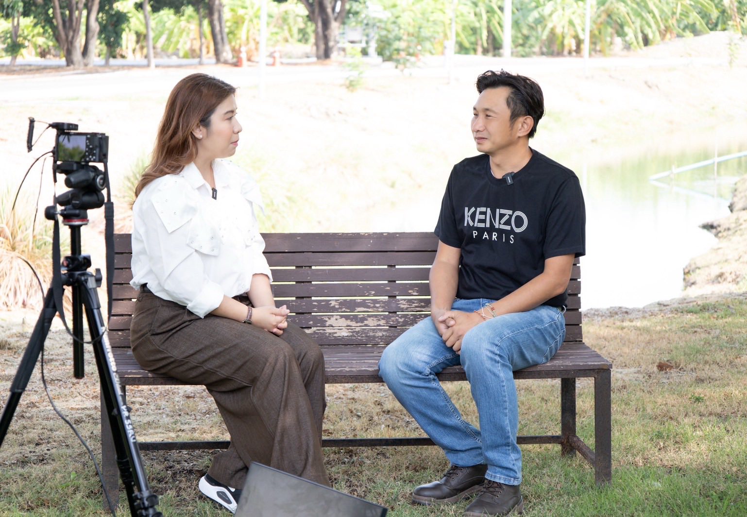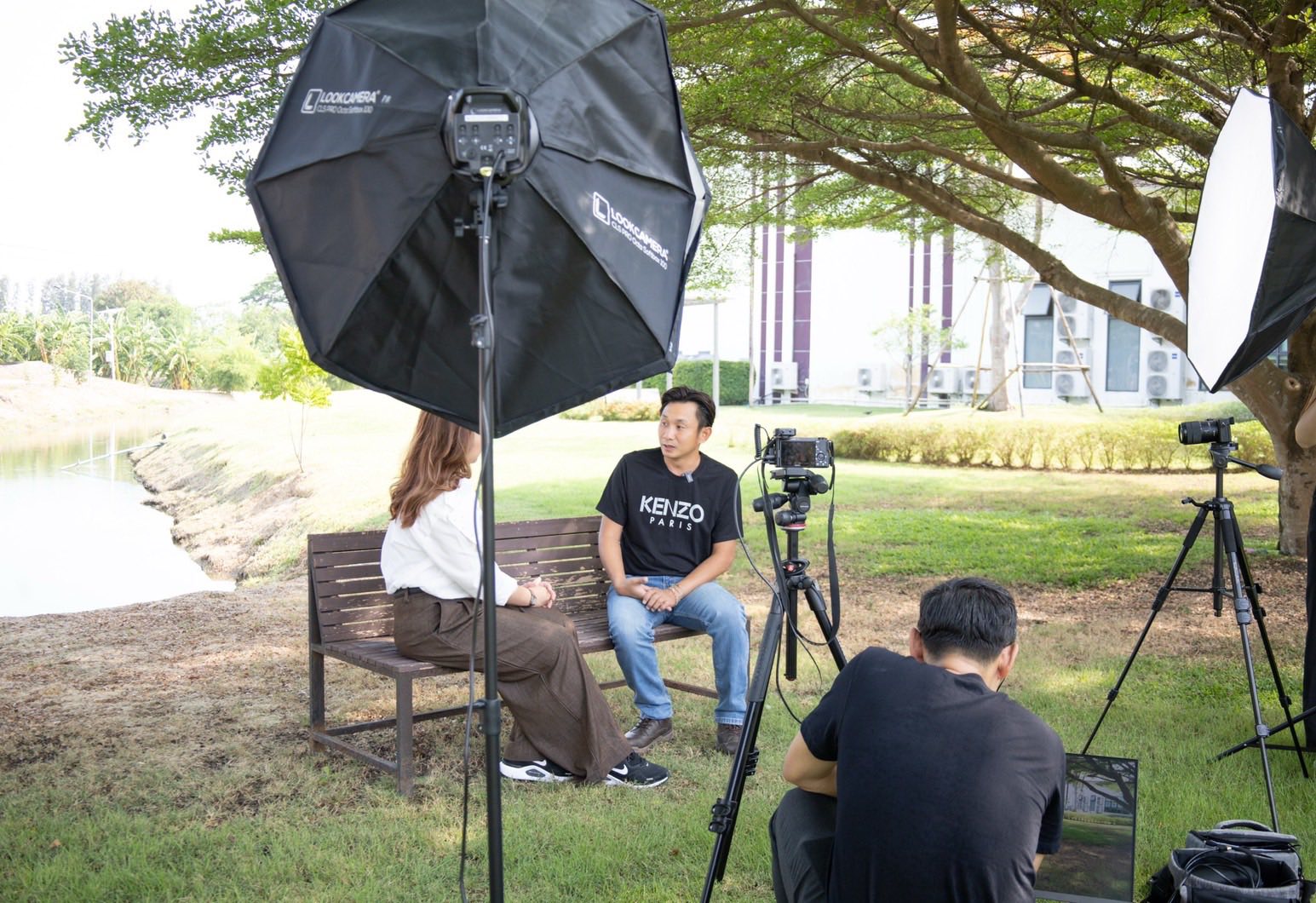 Behind the scenes of the interview filming with Assistant Professor Dr. Kaenphet Saranonwatt, Vice President of the Nakhon Pathom Campus, sharing his perspective on university development