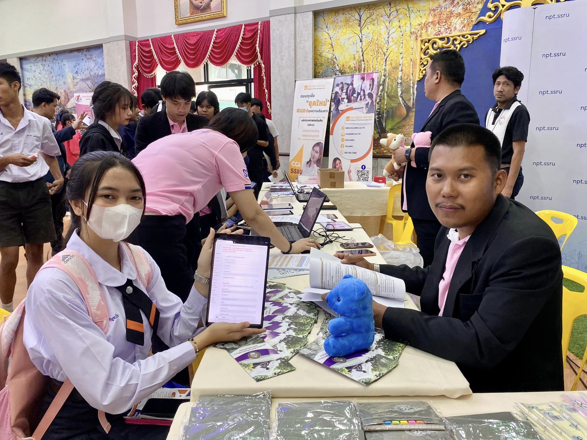 Suan Sunandha Rajabhat University is ready to provide advice that answers the future path of every student. This event was led by Asst. Prof. Dr. Kanpetch Saranonthawat, Vice President of Nakhon Pathom Campus together with College of Logistics and Supply Chain / College of Hospitality Industry Management / College of Communication Arts / College of Politics and Government / College of Innovation and Management / College of Allied Health Sciences / Faculty of Fine and Applied Arts / Faculty of Science and Technology to set up a booth of entering education for more than 1,000 youngsters from various schools.