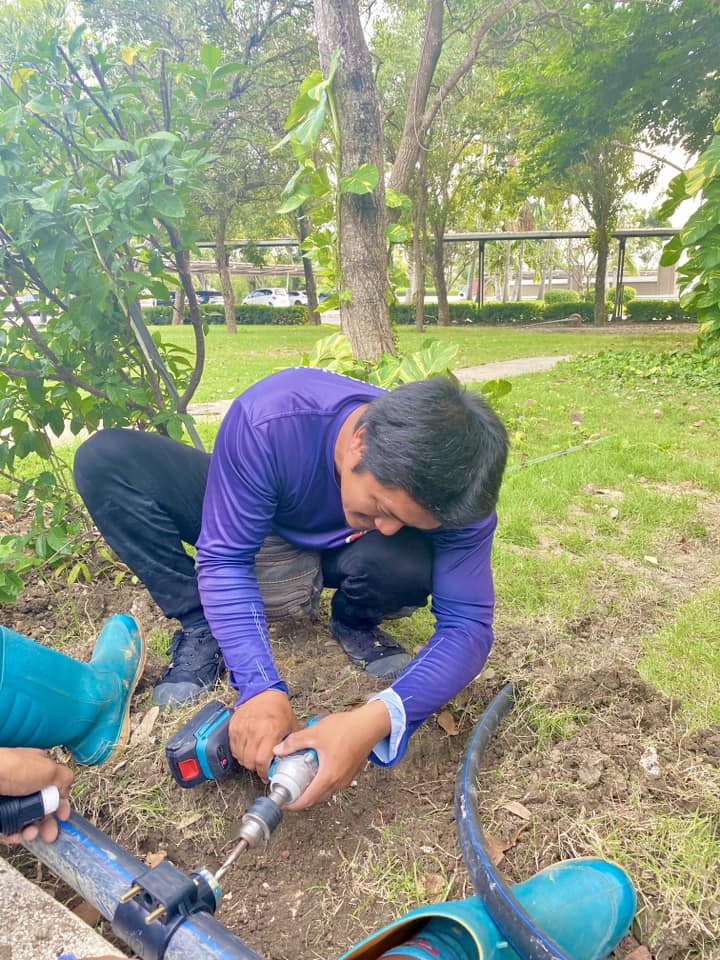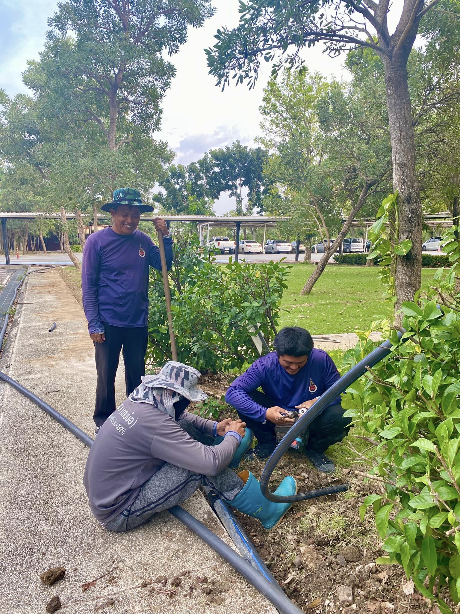 On Friday, 22 November 2024 - After determining that a conventional lawn watering system was necessary, the Buildings and Landscape Department dispatched the appropriate staff to the location to install a sprinkler system and clean the area surrounding the different buildings. The goal is to establish effective administration that would result in safety and beauty at the Suan Sunandha Rajabhat University, Nakhon Pathom Campus.