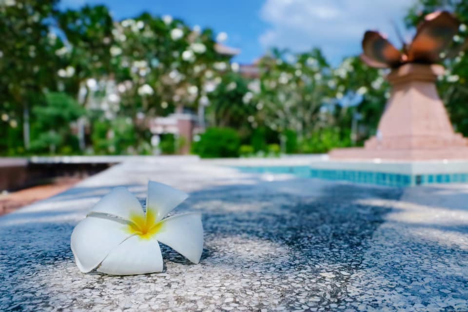 + "Lignum Vitage" flower, the symbol of Suan Sunandha Rajabhat University.