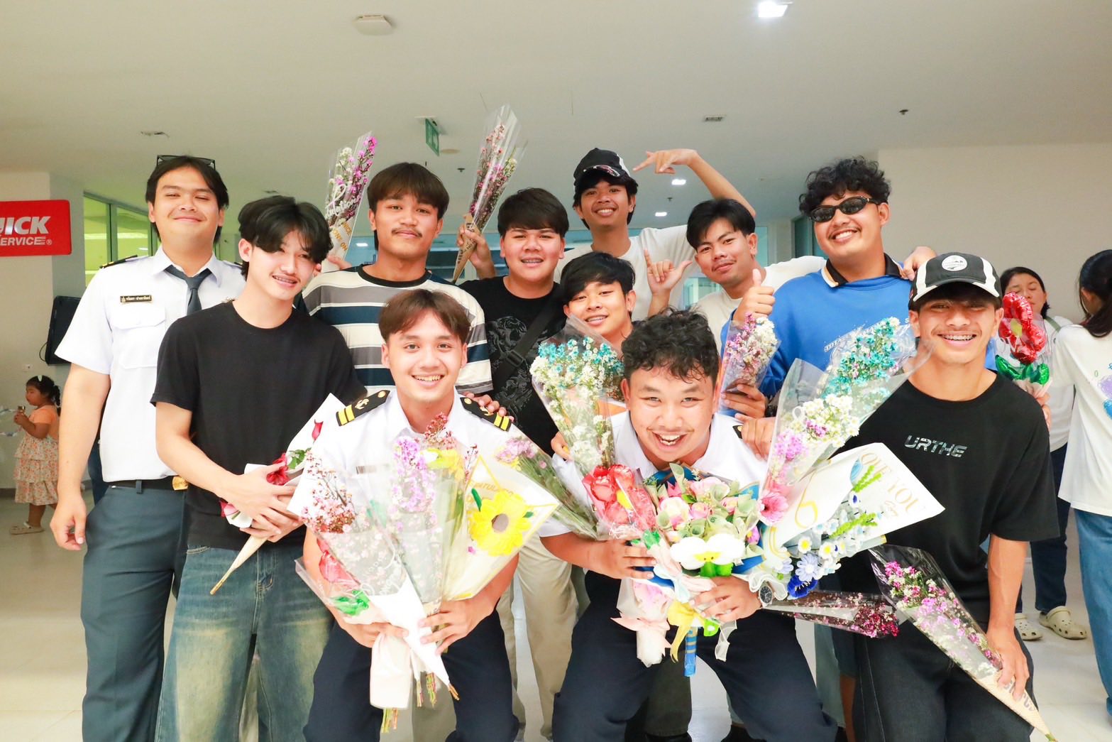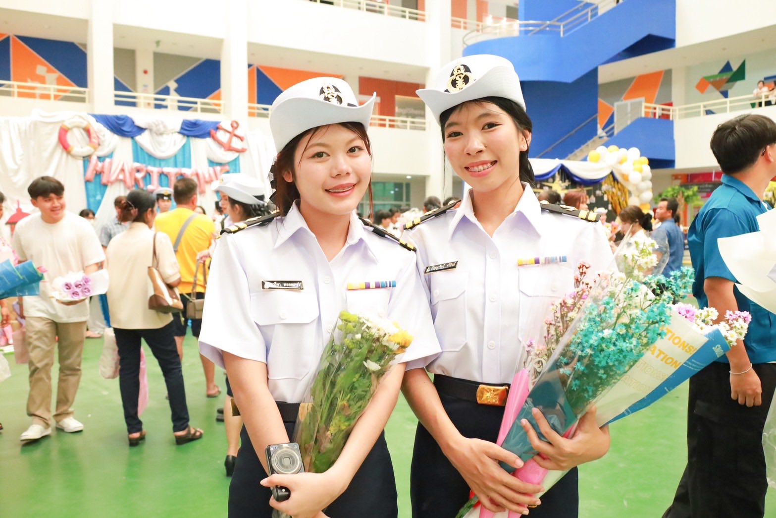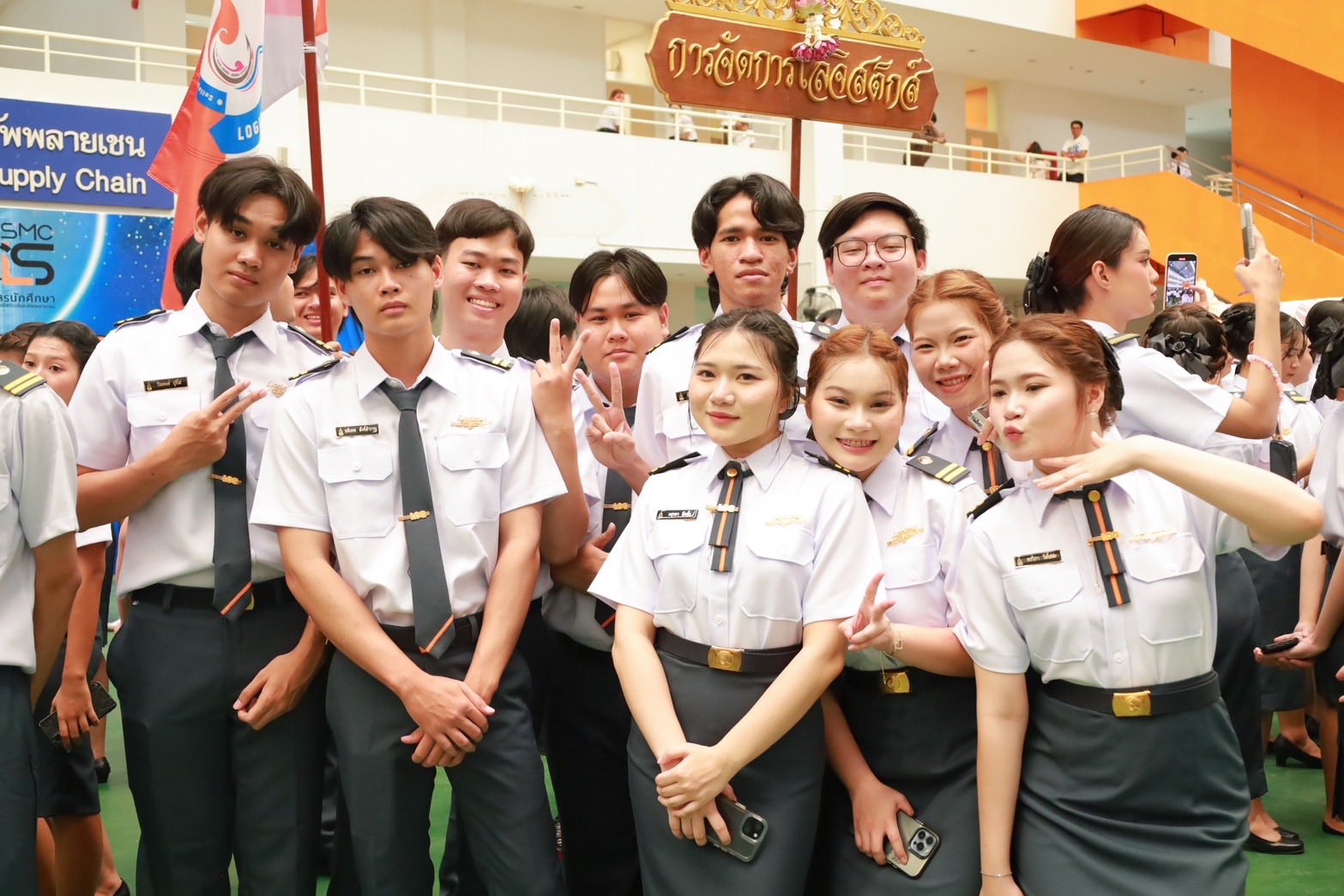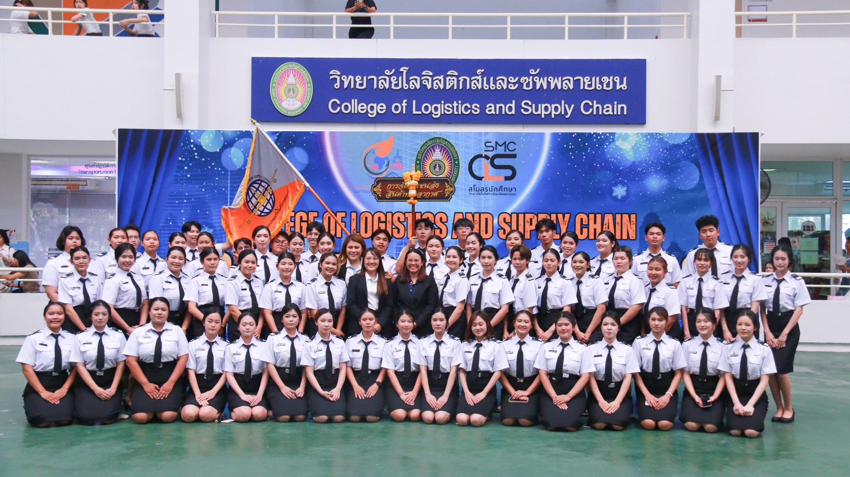 Highlights from the cheering activity during the Capping and Pinning Ceremony for 3rd-year students of the College of Logistics and Supply Chain, held at the Green Courtyard, College of Logistics and Supply Chain, Suan Sunandha Rajabhat University, Nakhon Pathom Campus.
