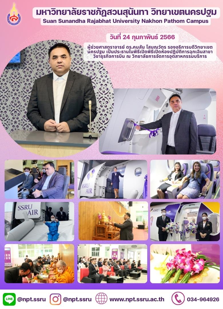 On Friday, 24 February 2023 – College of Hospitality Industry Management by Asst. Prof. Dr. Anat Thapinta, Dean together with administrators, faculty and staff organized the opening ceremony for the airline business emergency laboratory where presided over by Asst. Prof. Dr. Komson Sommanawat, Vice President for Nakhon Pathom Campus and on this occasion, Assoc. Prof. Dr. Chutikarn Sriviboon, President have visited the laboratory.