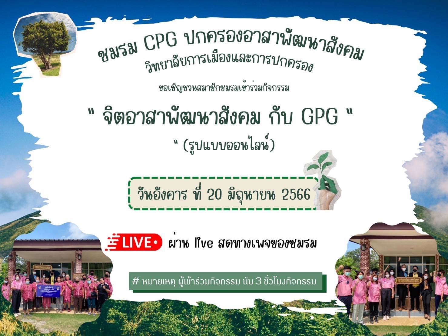 Invite CPG Club member join the “Volunteering to Develop Society with CPG” via Live, page: SSRU CPG on Tuesday, 20 June 2023 at 13:00 hrs. onwards