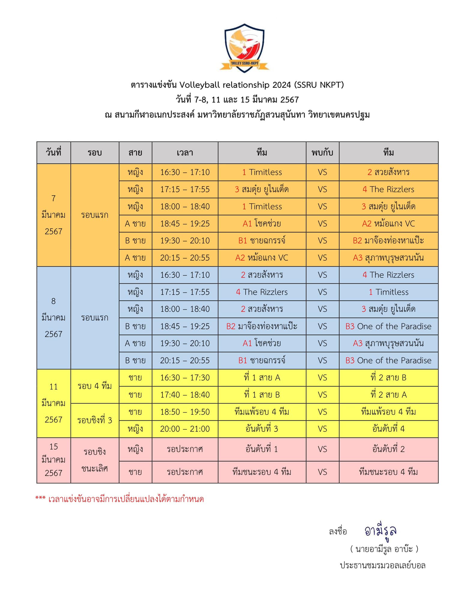 Volleyball Relationship 2024 Competition Schedule Has Been Released. Get ready for cheering and come to join us on 7-8, 11 and 15 March 2024. Go for it.