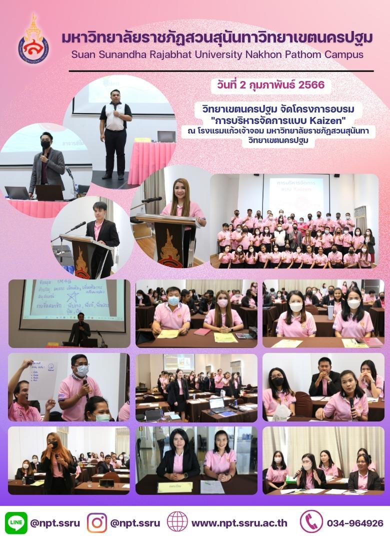 On Thursday, 2 February 2023 – Office of the Nakhon Pathom Campus, SSRU held “Kaizen Management System” training at Kaew Chao Chom Hotel, SSRU Nakhon Pathom Campus where headed by Asst. Prof. Dr. Komson Sommanawat, Vice President for Nakhon Pathom Campus. Ajarn Montree Boonkhan from Professional Training and Consultancy Co., Ltd. was the honorable guest speaker.