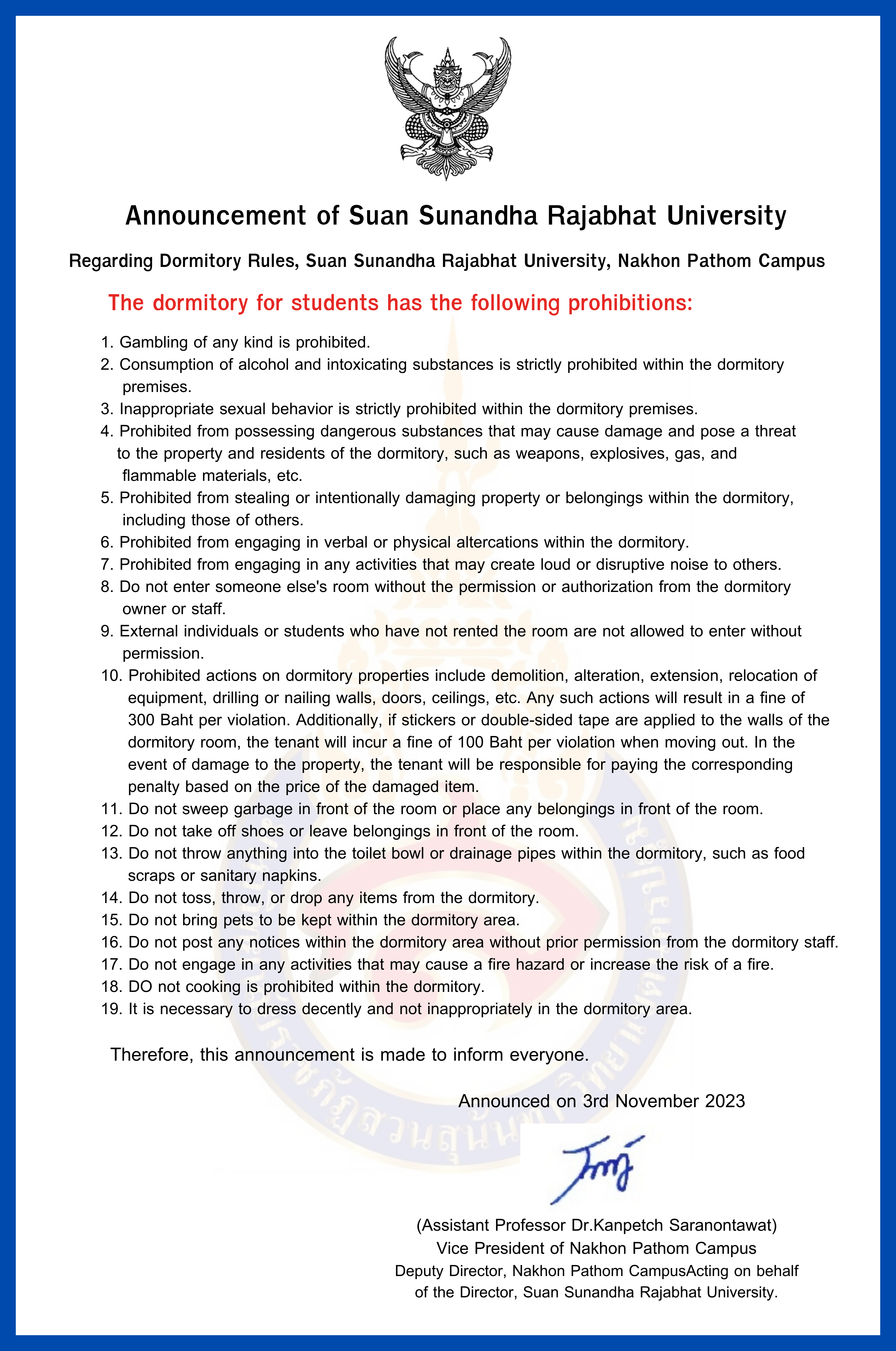 + "Lignum Vitage" flower, the symbol of Suan Sunandha Rajabhat University.