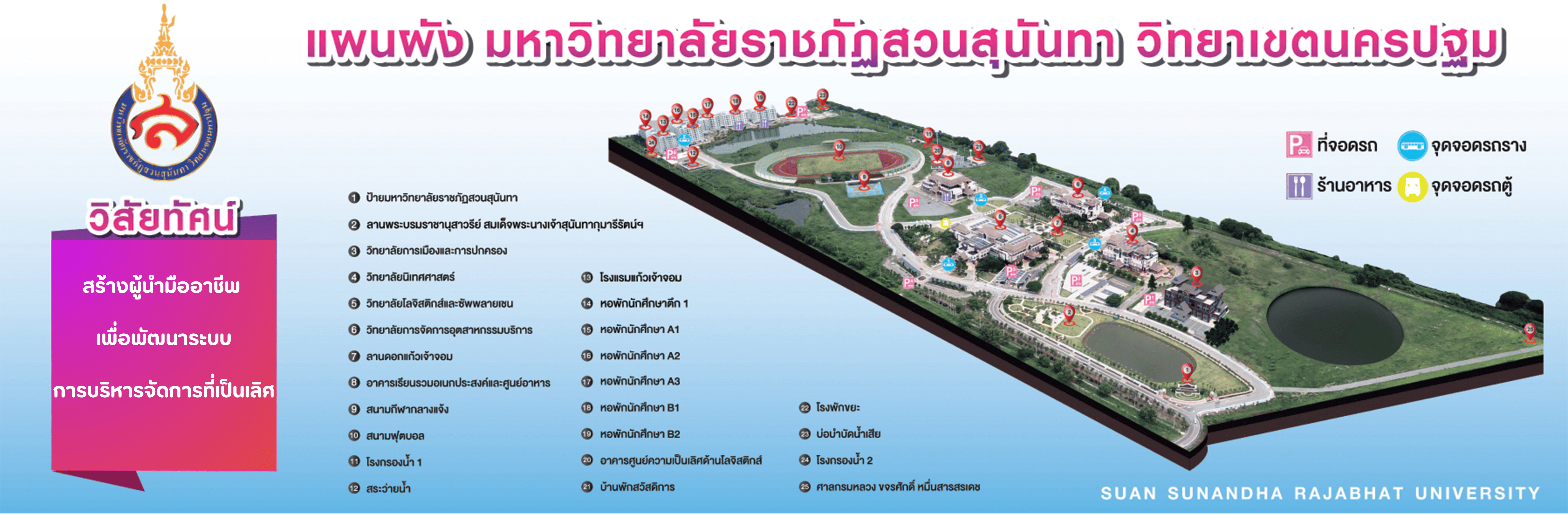 + "Lignum Vitage" flower, the symbol of Suan Sunandha Rajabhat University.