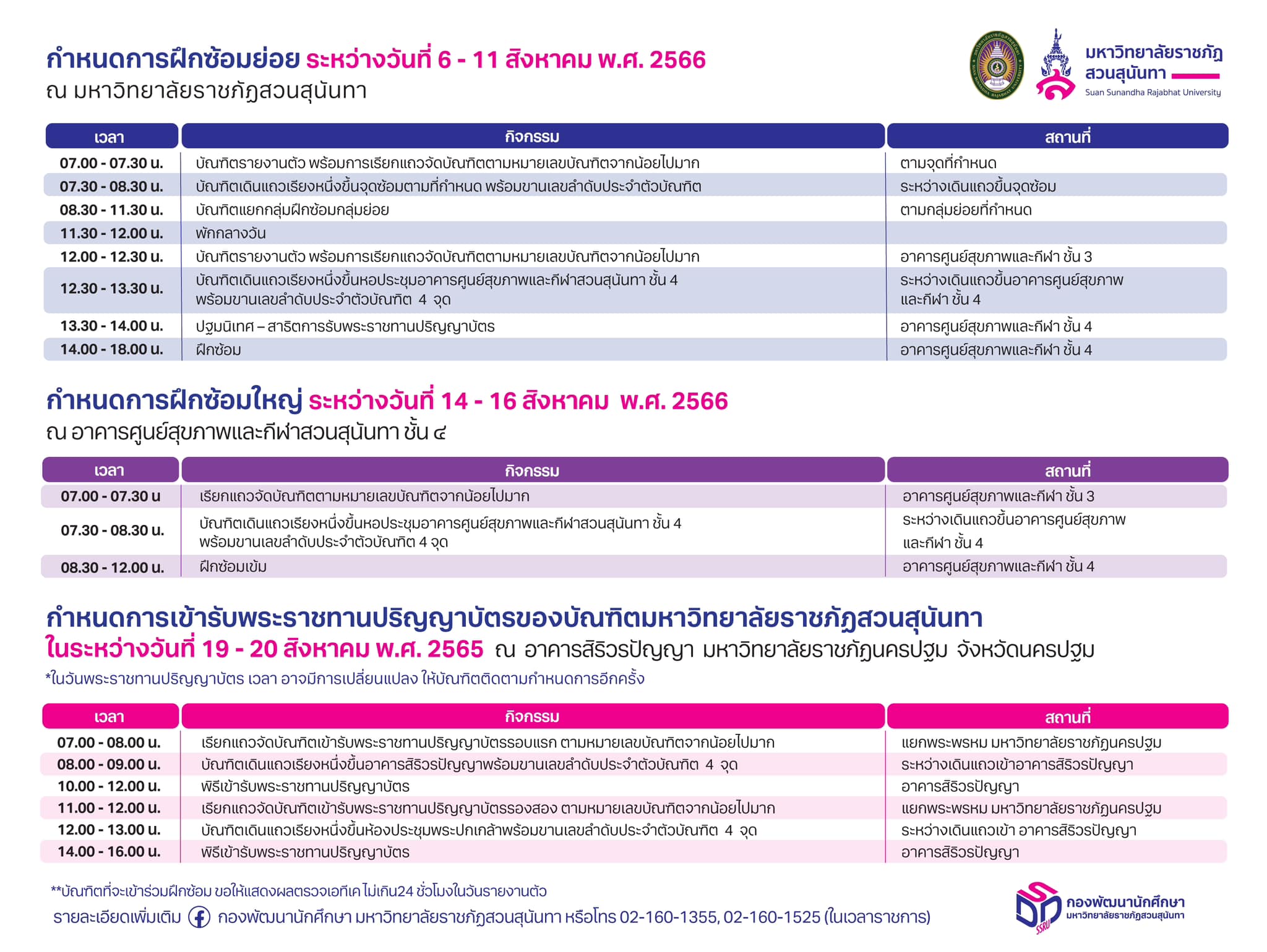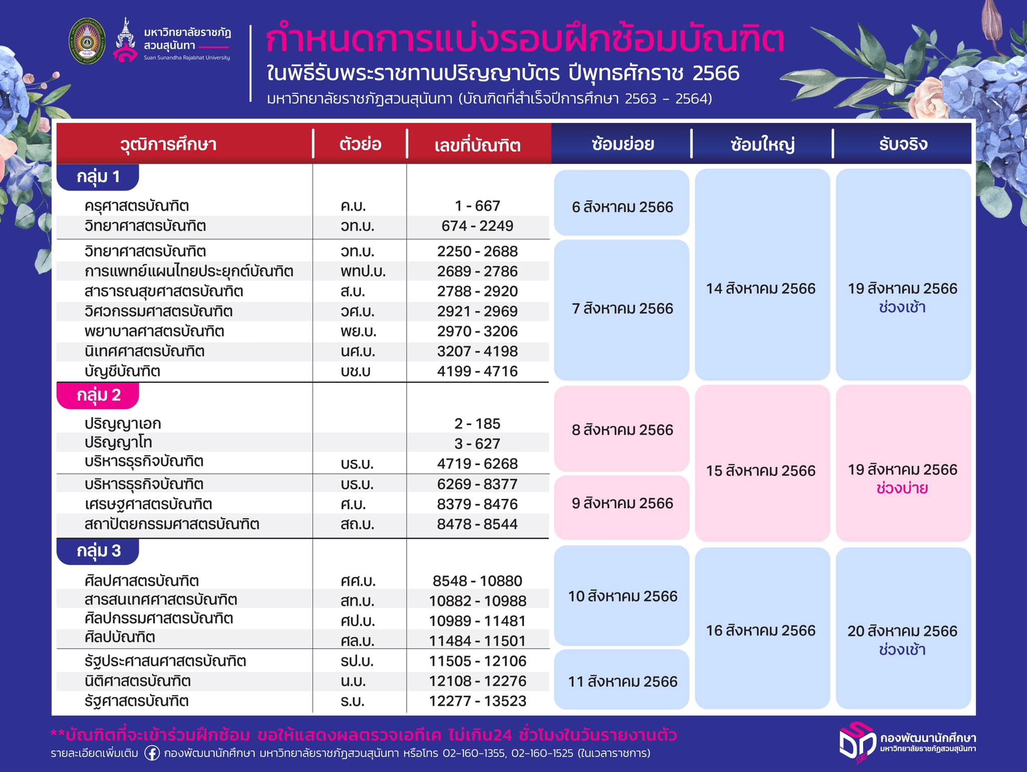 กำหนดการฝึกซ้อมบัณฑิตและกำหนดการเข้ารับพระราชทานปริญญาบัตรประจำปีพุธศักราช 2566