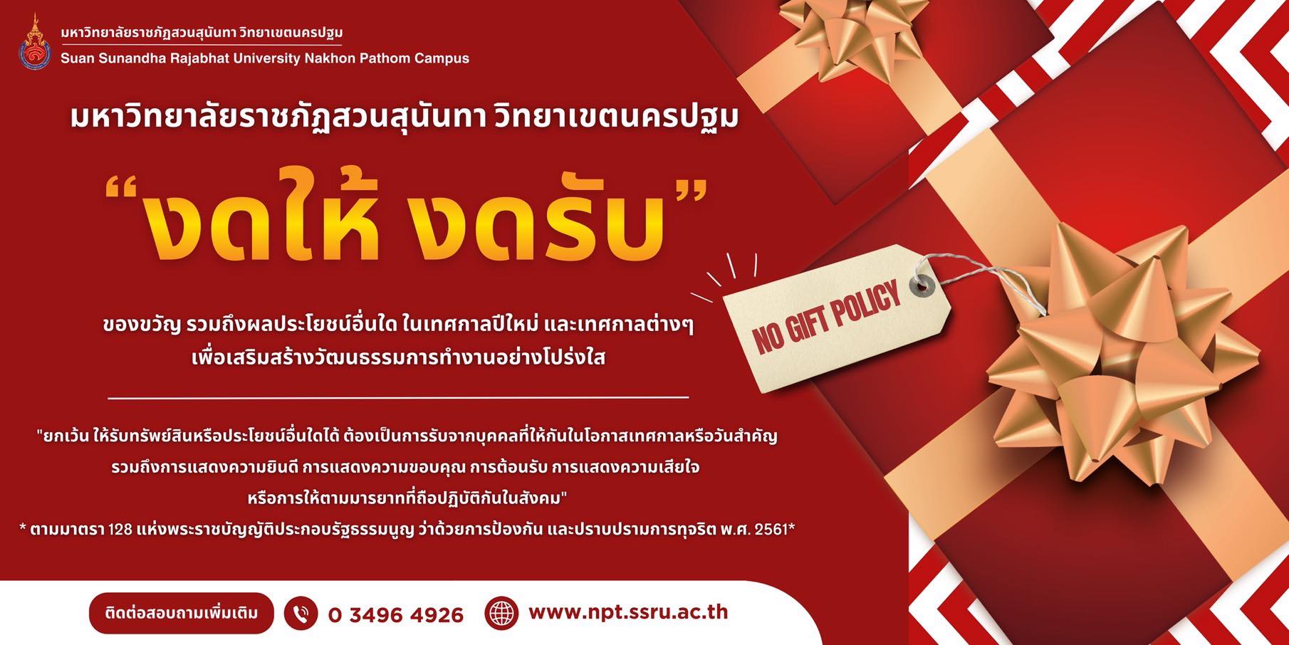 หน้าหลัก > ข่าว > ข่าวประชาสัมพันธ์ > No gift policy