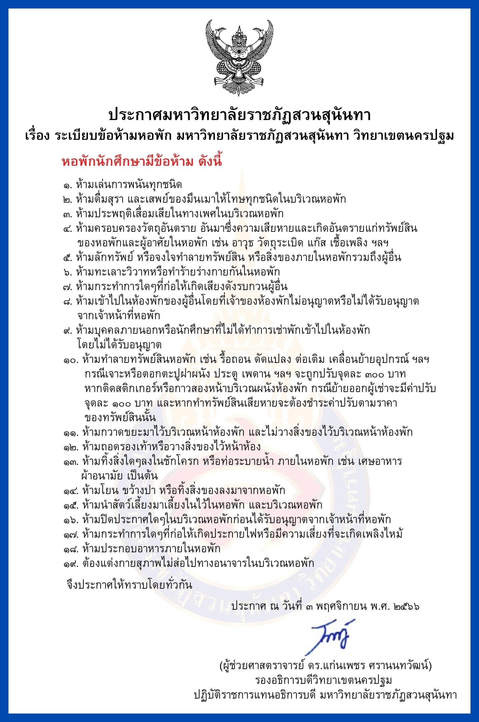 ระเบียบข้อห้ามหอพักนักศึกษา