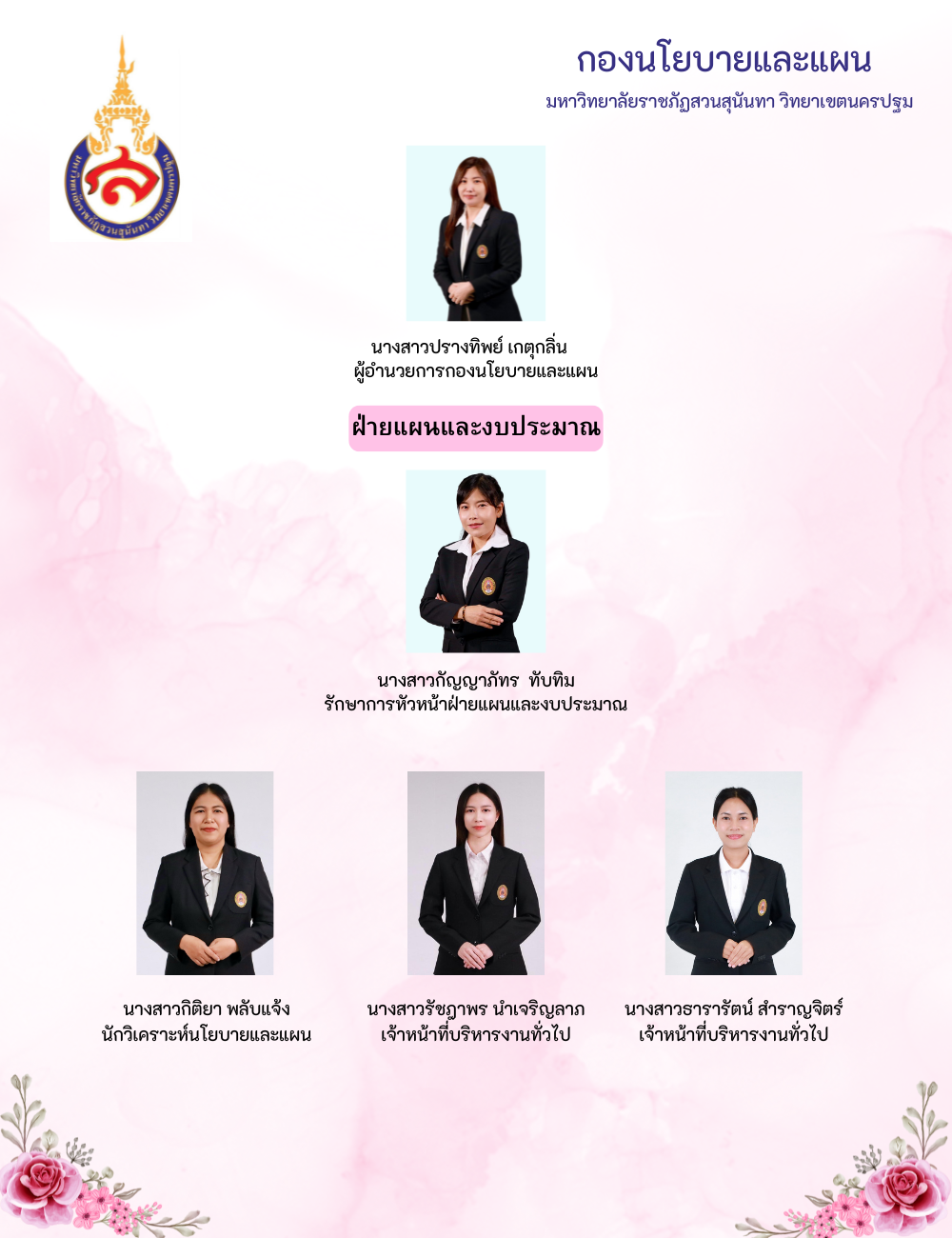 ทำเนียบ กองนโยบายเเละแผน มหาวิทยาลัยราชภัฏสวนสุนันทา วิทยาเขตนครปฐม