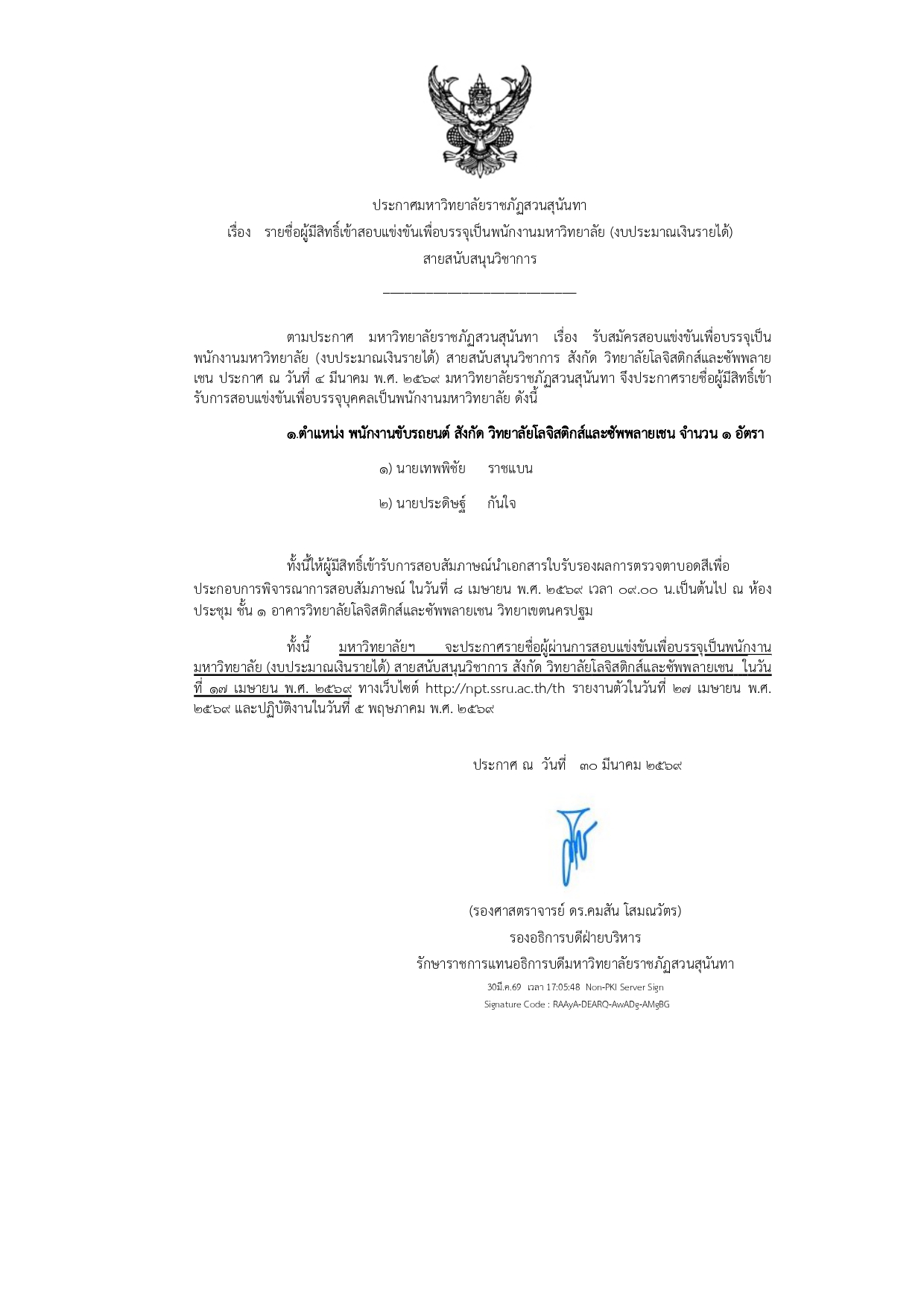 ประกาศรายชื่อผู้มีสิทธิ์เข้ารับการสอบแข่งขันเพื่อบรรจุเป็นพนักงานมหาวิทยาลัย สังกัด วิทยาลัยโลจิสติกส์และซัพพลายเชน