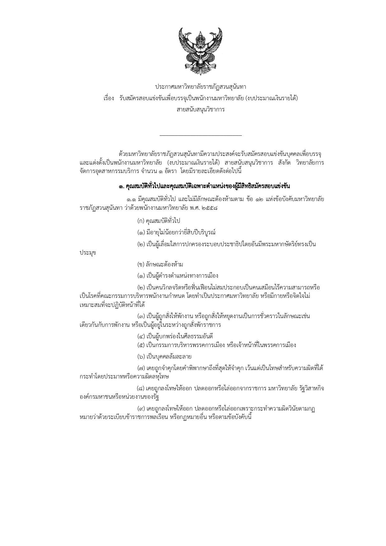 ประกาศรับสมัครพนักงานมหาวิทยาลัย สังกัด วิทยาลัยการจัดการอุตสาหกรรมบริการ