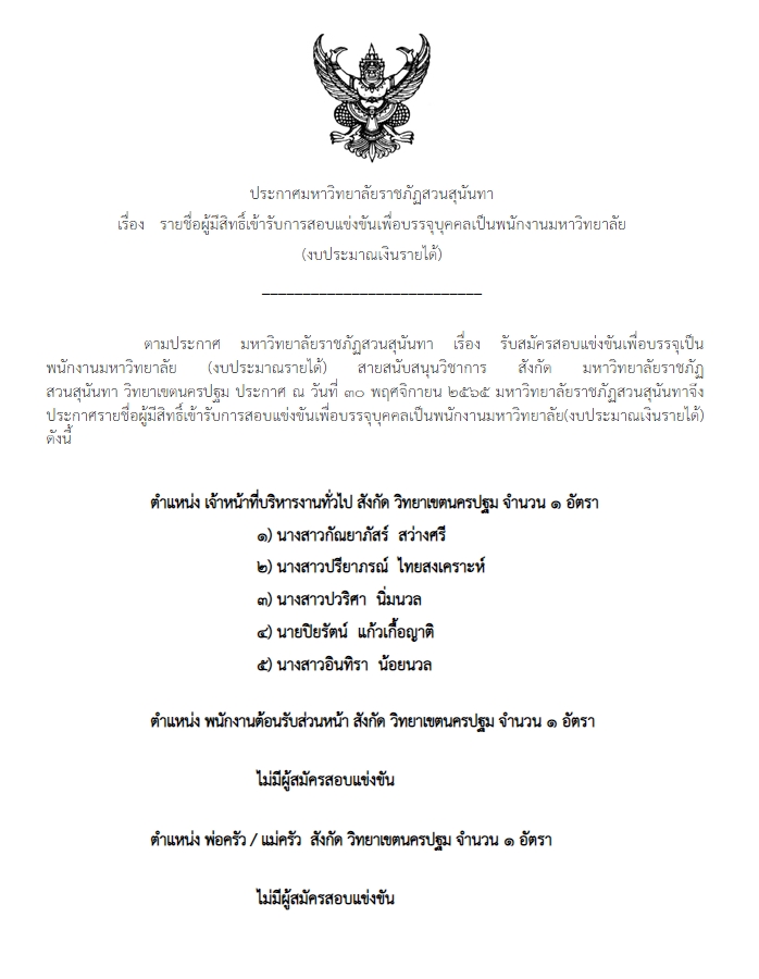 > ประกาศรายชื่อผู้มีสิทธิ์เข้ารับการสอบแข่งขัน เพื่อบรรจุบุคคล เป็นพนักงานมหาวิทยาลัย (งบประมาณรายได้)