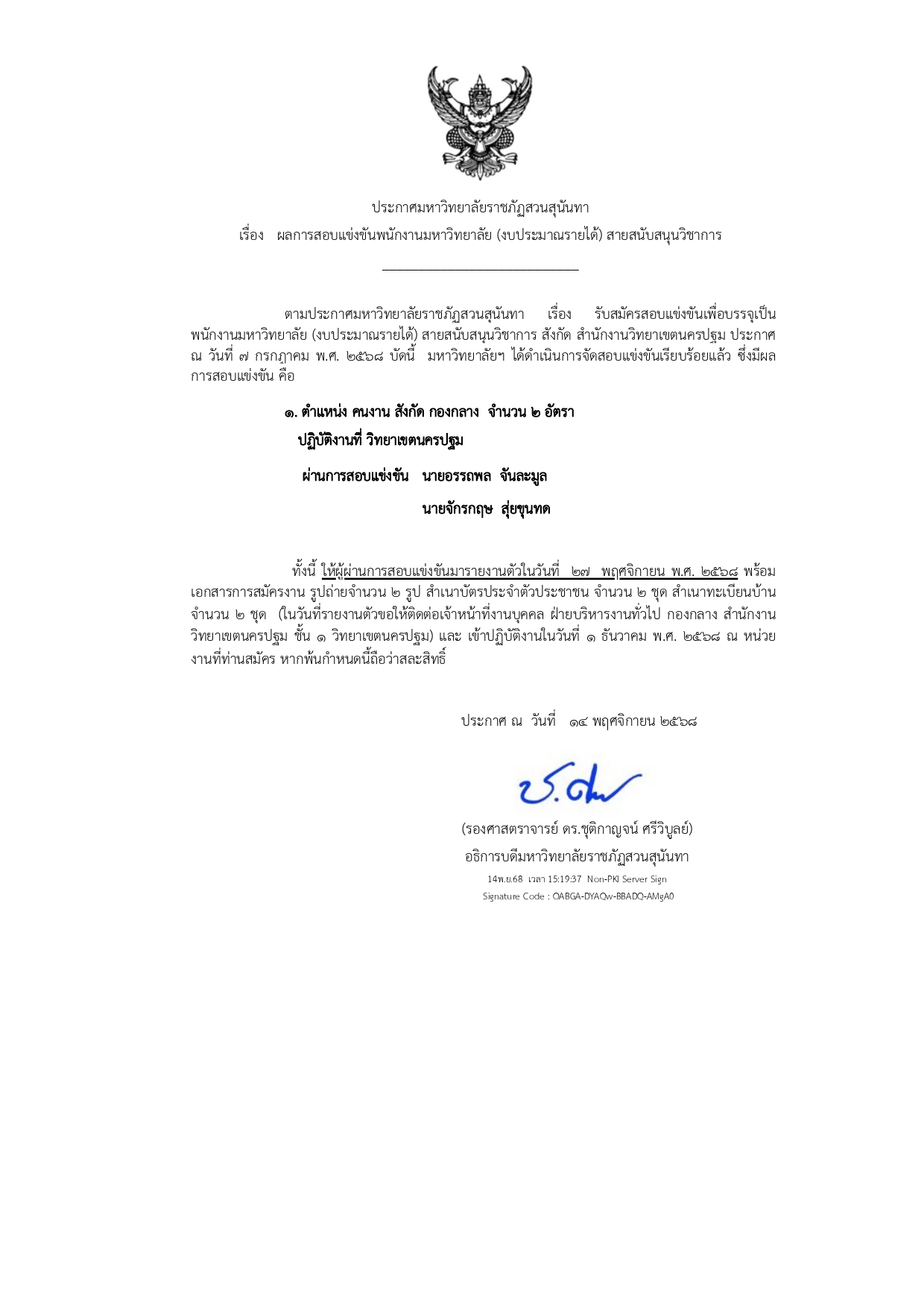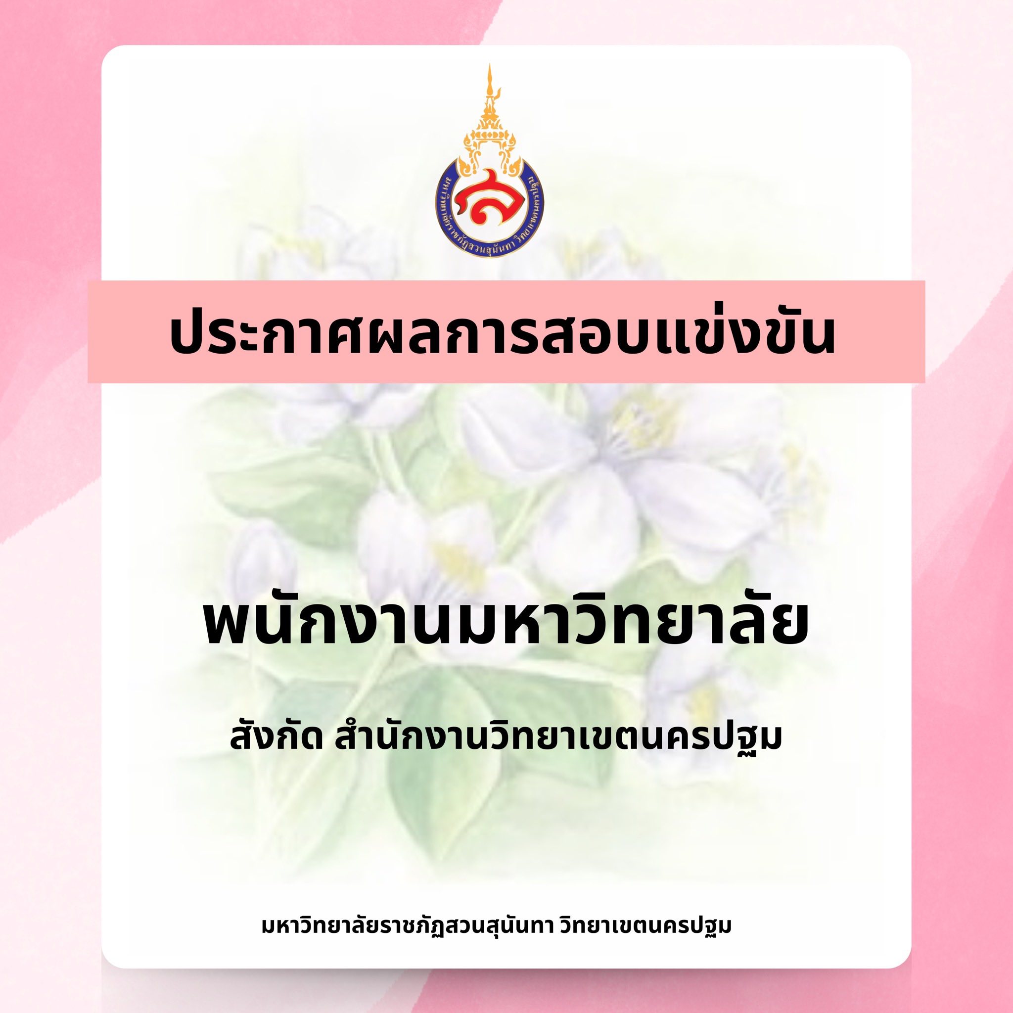 ประกาศผลการสอบแข่งขันเพื่อบรรจุเป็นพนักงานมหาวิทยาลัย สังกัด สำนักงานวิทยาเขตนครปฐมตำแหน่ง คนงาน