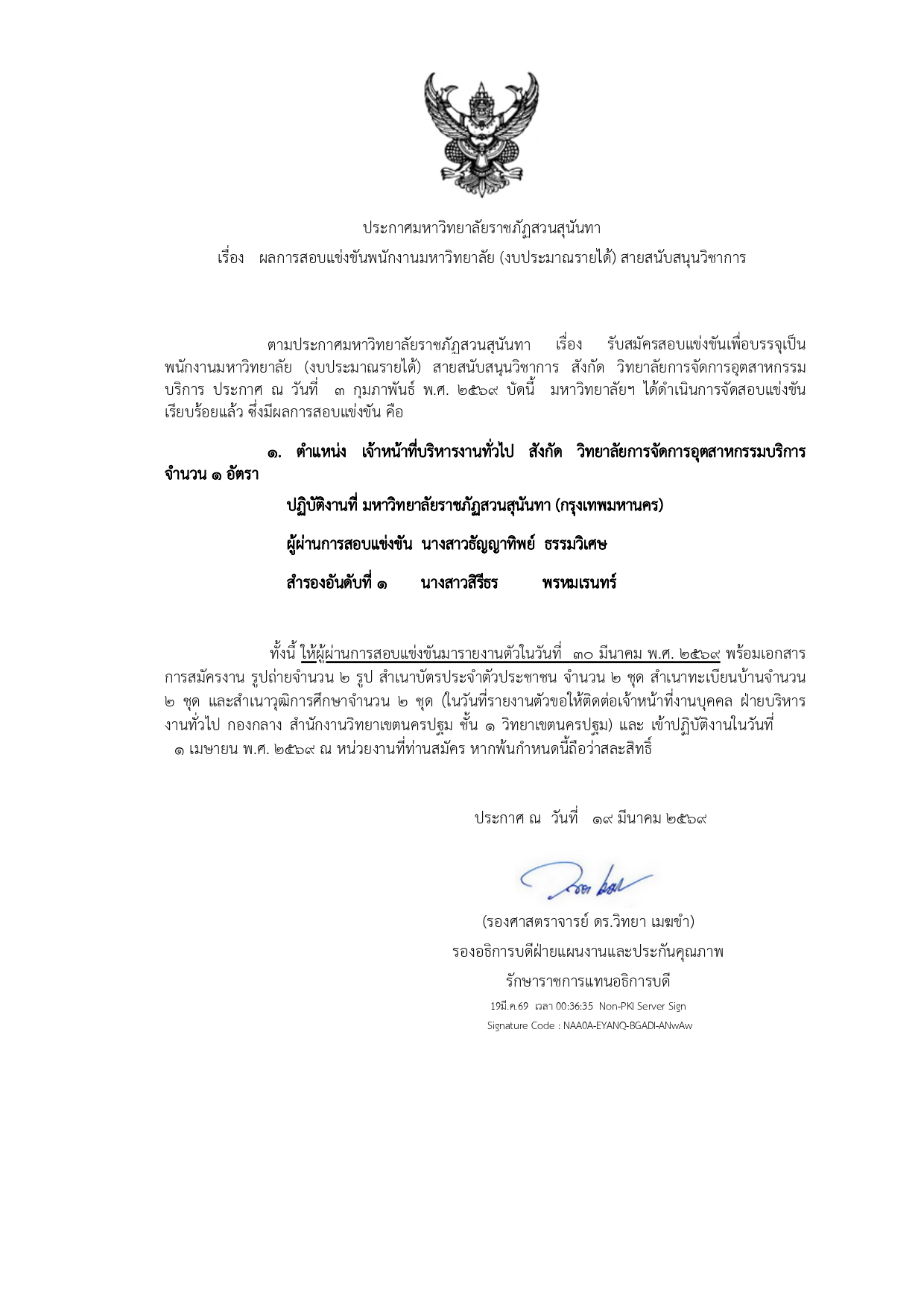 ประกาศผลการสอบแข่งขันเพื่อบรรจุเป็นพนักงานมหาวิทยาลัย สังกัด วิทยาลัยการจัดการอุตสาหกรรมบริการ