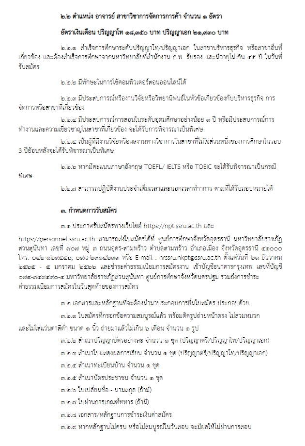 ประกาศ รับสมัครสอบแข่งขันเพื่อบรรจุเป็นพนักงานมหาวิทยาลัย (งบประมาณเงินรายได้) สายวิชาการ สังกัด ศูนย์การศึกษาจังหวัดอุดรธานี ตำแหน่ง อาจารย์ จำนวน 2 อัตรา