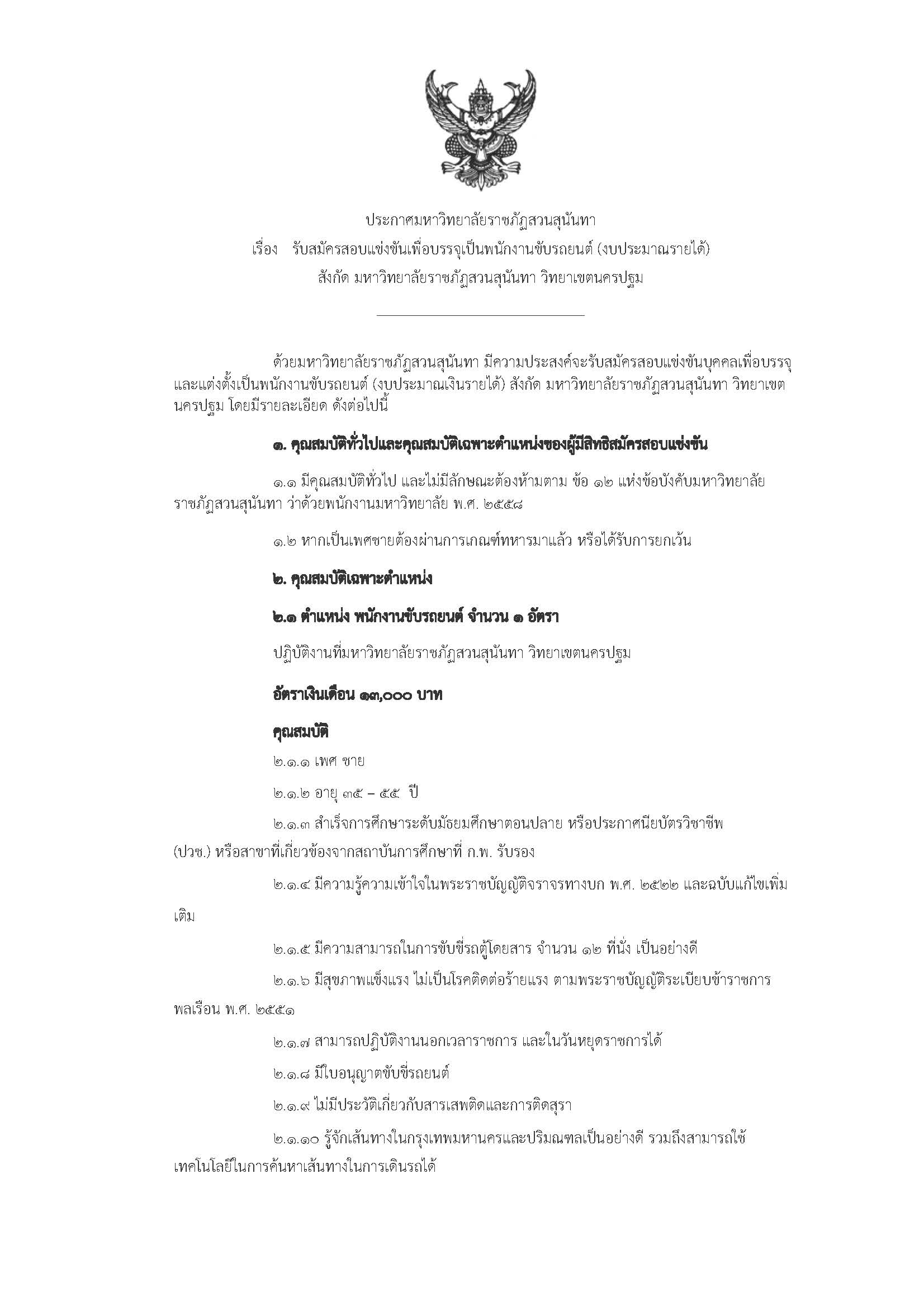 > ประกาศรับสมัครสอบแข่งขันเพื่อบรรจุเป็นพนักงานขับรถยนต์ จำนวน 1 อัตรา