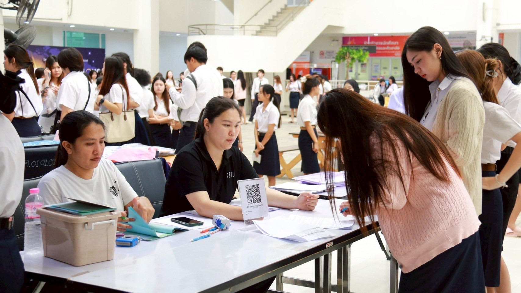 นักศึกษาวิทยาลัยโลจิสติกส์และซัพพลายเชน มหาวิทยาลัยราชภัฏสวนสุนันทา วิทยาเขตนครปฐม เข้ารับชุดพิธีการ ณ บริเวณโถงกลาง อาคารวิทยาลัยโลจิสติกส์และซัพพลายเชน