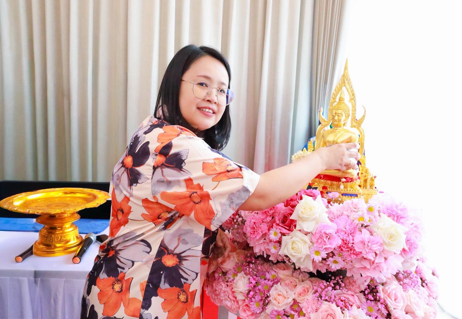 ผู้ช่วยศาสตราจารย์ ดร.แก่นเพชร ศรานนทวัฒน์ รองอธิการบดีวิทยาเขตนครปฐม ร่วมด้วยผู้อำนวยการสำนักงานวิทยาเขตนครปฐม, ผู้อำนวยการกอง และบุคลากร เข้าร่วมกิจกรรมสืบสานประเพณีสงกรานต์ พิธีสรงน้ำพระพุทธสุนันทากร และพระบรมรูปจำลองสมเด็จพระนางเจ้าสุนันทากุมารีรัตน์ พระบรมราชเทวี ประจำปี 2569