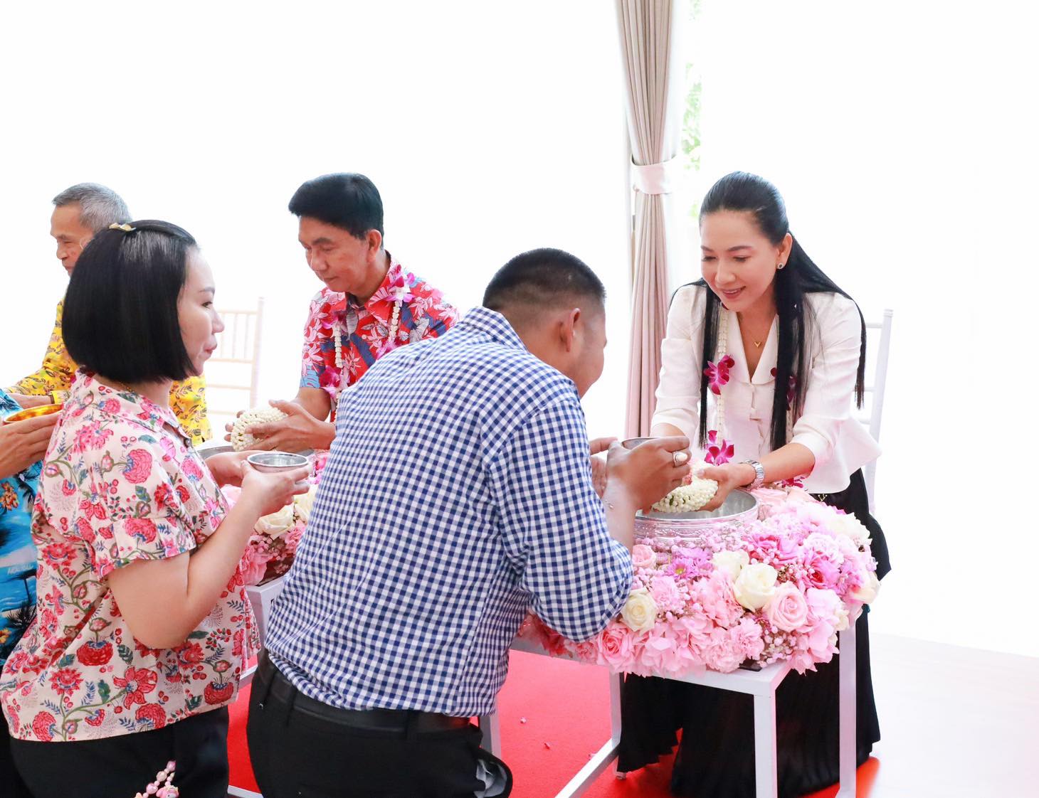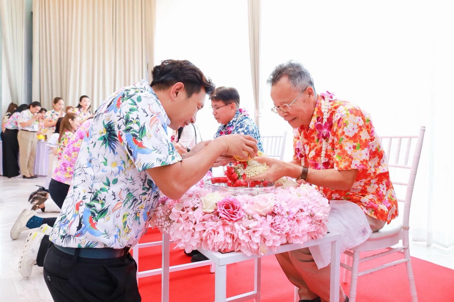 โดยมี รองศาสตราจารย์ ดร.ฤๅเดช เกิดวิชัย นายกสภามหาวิทยาลัยฯ และรองศาสตราจารย์ ดร.ชุติกาญจน์ ศรีวิบูลย์ อธิการบดี พร้อมคณะผู้บริหาร ร่วมให้พรแก่บุคลากรในพิธีรดน้ำดำหัวตามประเพณีไทย ณ หอเกียรติยศ ชั้น 1 อาคาร 32 มหาวิทยาลัยราชภัฏสวนสุนันทา