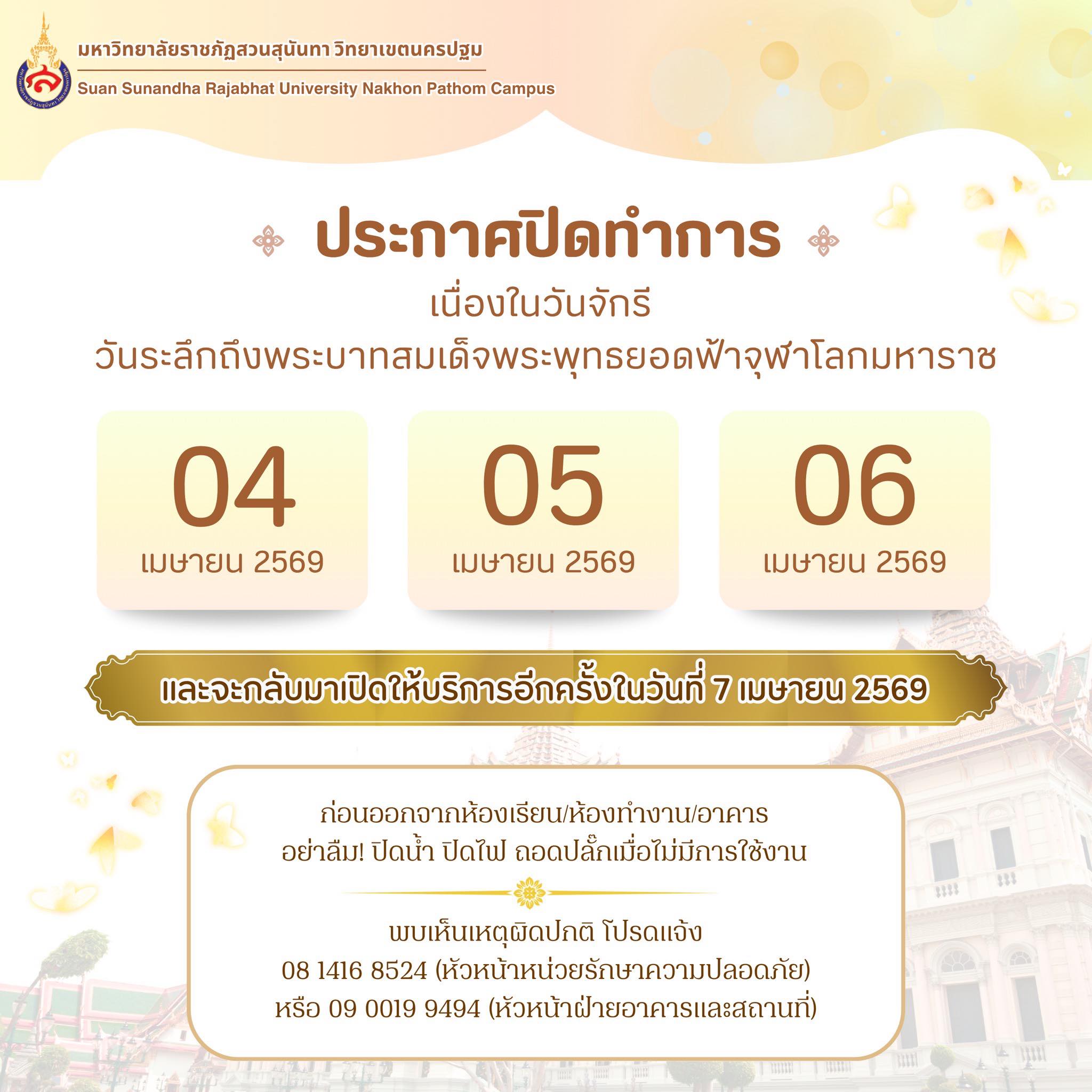 ประกาศปิดทำการเนื่องในวันจักรี