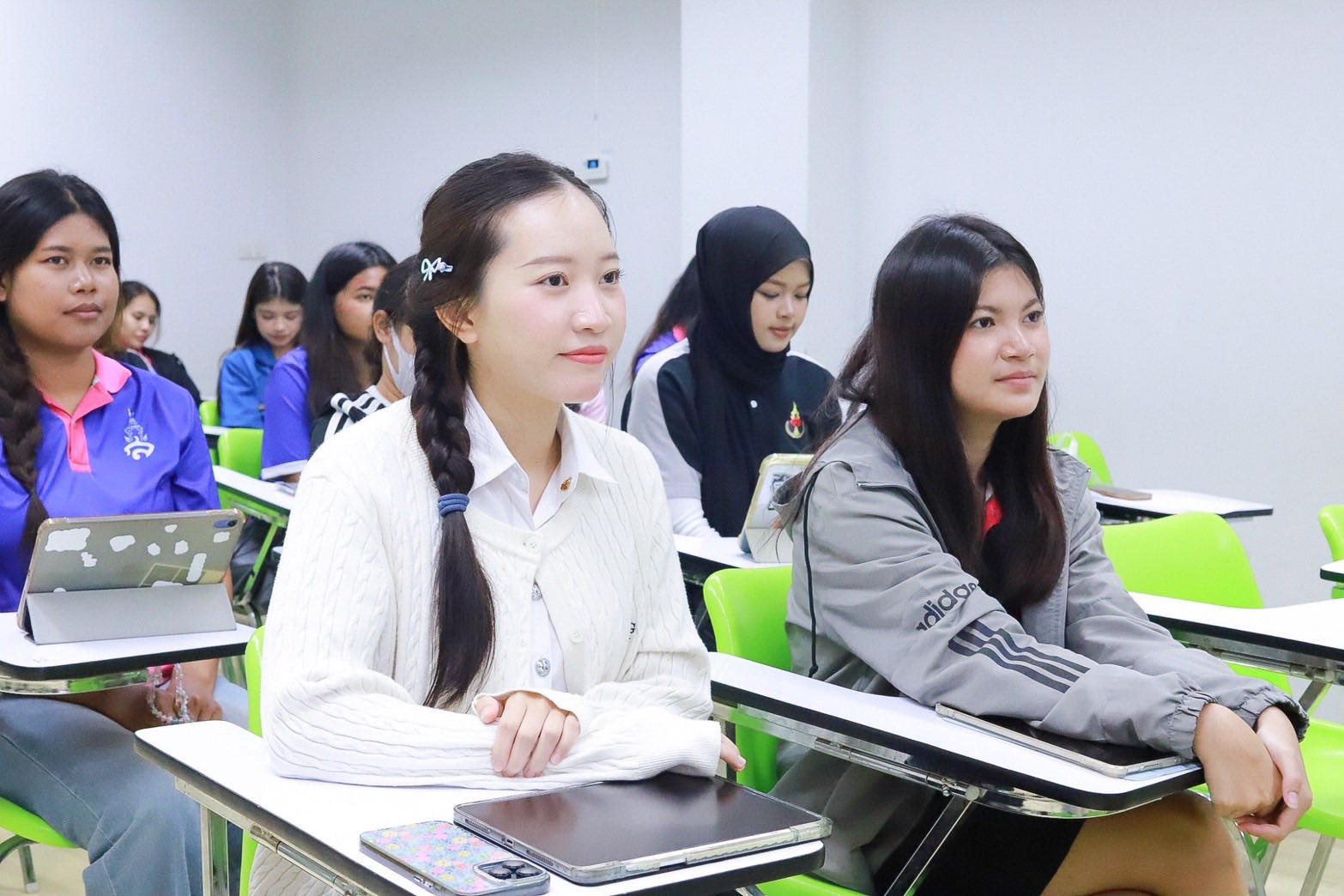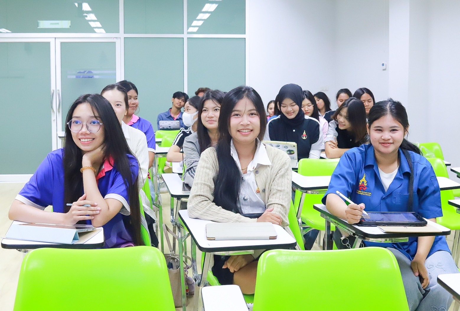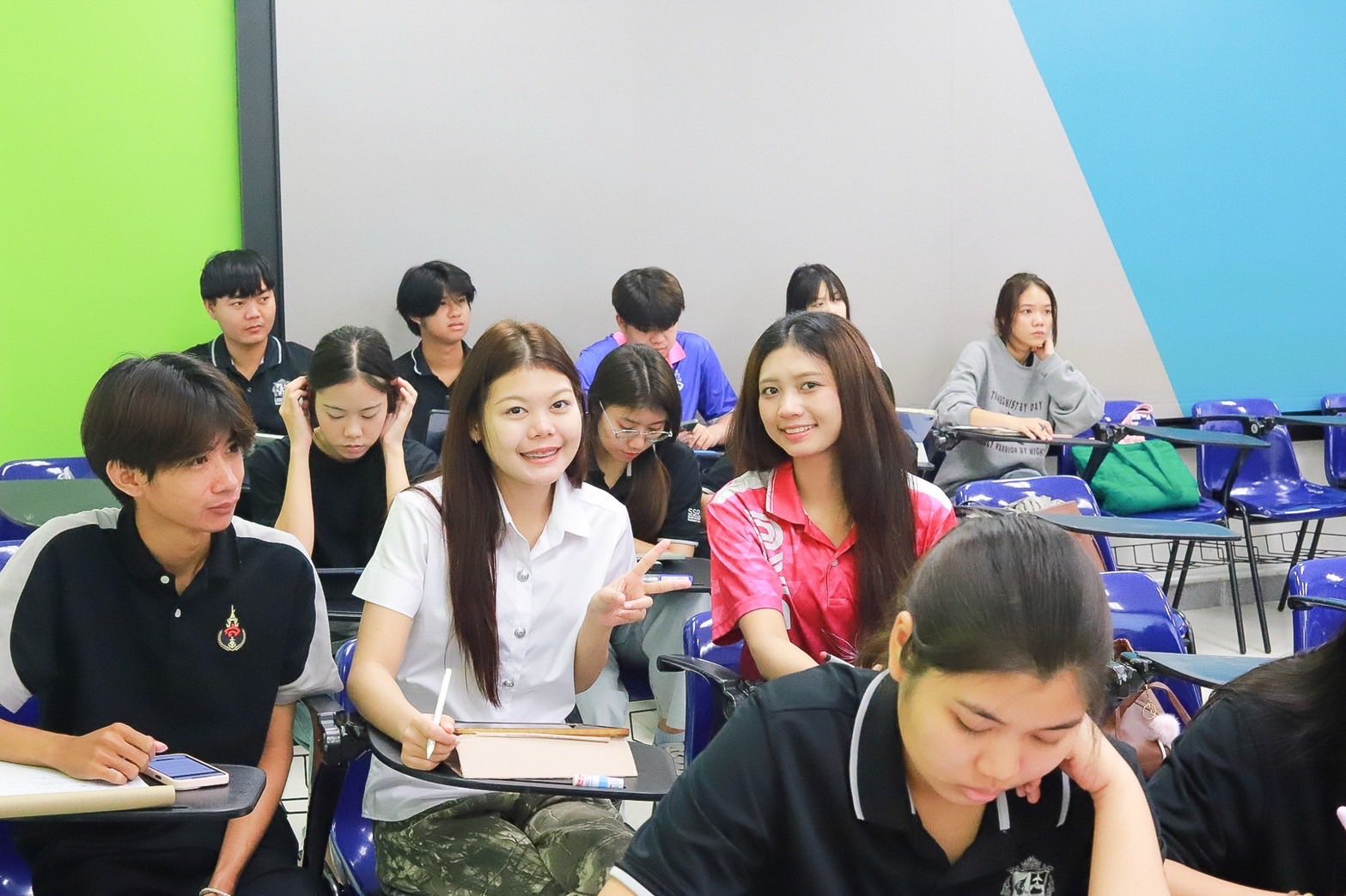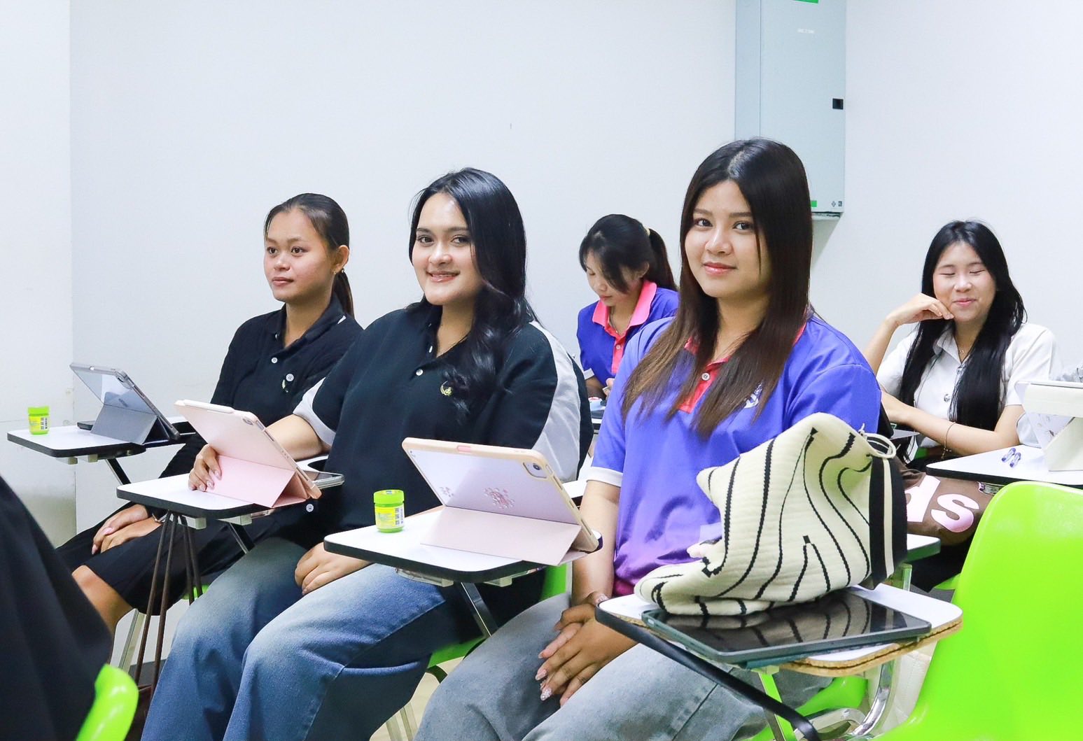 ภาพบรรยากาศการเรียนของน้อง ๆ วิทยาลัยโลจิสติกส์และซัพพลายเชน มหาวิทยาลัยราชภัฏสวนสุนันทา วิทยาเขตนครปฐม เต็มไปด้วยการเรียนรู้ ทั้งการพูดคุย แลกเปลี่ยนความคิดเห็น และการทำกิจกรรมร่วมกันกับเพื่อน ๆ ภายในห้องเรียน