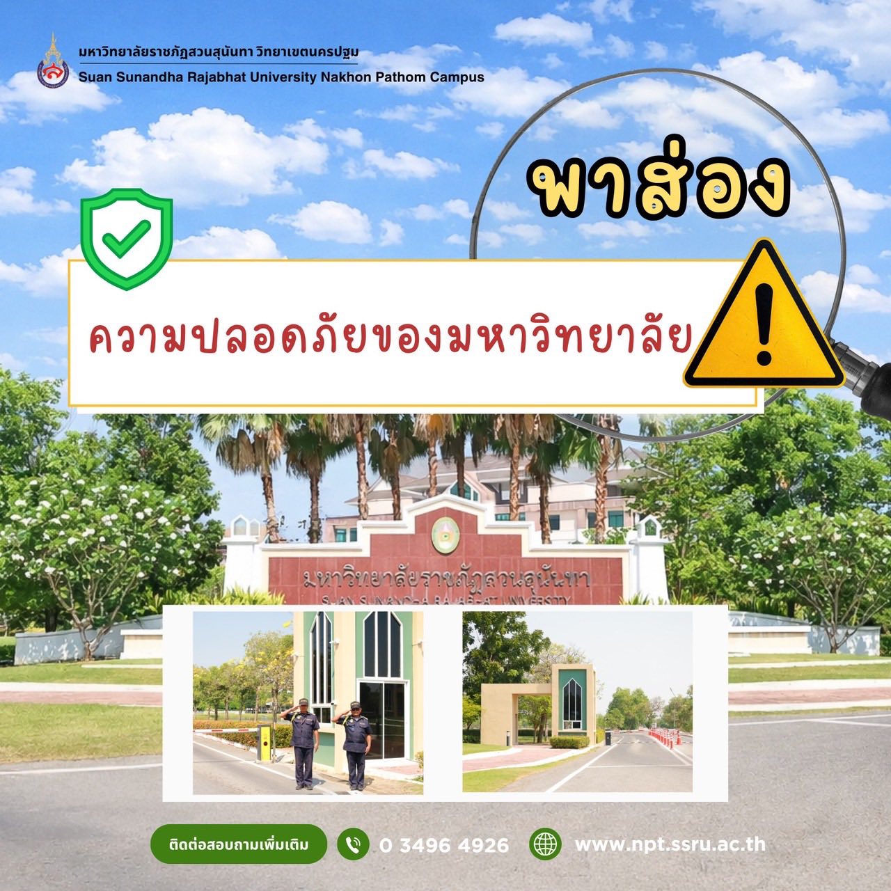 มหาวิทยาลัยราชภัฏสวนสุนันทา วิทยาเขตนครปฐม ร่วมกันดูแลความปลอดภัยของพวกเราทุกคน ให้มหาวิทยาลัยเป็นพื้นที่น่าอยู่ไปด้วยกันนะคะ