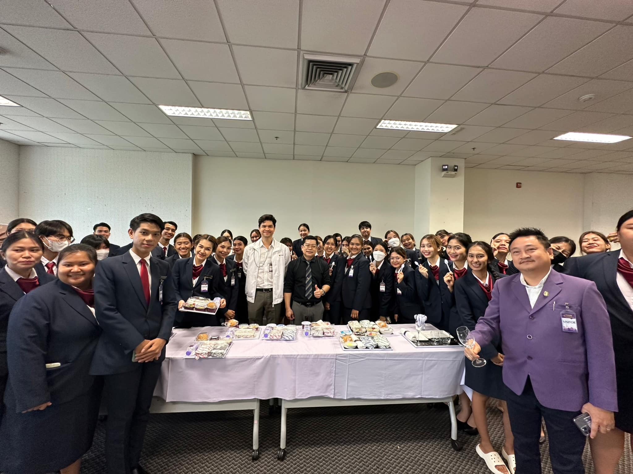 วันที่ 24 สิงหาคม 2566 ดร.บัว ศรีคช อาจารย์สรภพ จิลลานนท์ และ ดร.วีระ วีระโสภณ นำนักศึกษาสาขาวิชาการจัดการอุตสาหกรรมท่องเที่ยวและบริการ แขนงวิชาการบิน ชั้นปีที่ 4 จำนวน 50 คน เข้าศึกษาดูงานครัวการบินไทย สุวรรณภูมิ กทม ในรายวิชา TIM4412 การจัดการอาหารและเครื่องดื่มในอุตสาหกรรมการบิน ซึ่งนักศึกษาทั้งหมดได้เรียนรู้ทฤษฎีต่างๆก่อน เข้าทดลองฝึกปฏิบัติตามรายวิชาการบริการอาหารและเครื่องดื่มตามรูปแบบของสายการบินไทย รวมทั้งได้เข้าไปชมกระบวนการผลิต การจัดการอาหาร ทั้งในชั้นธรรมดา ชั้นธุรกิจ และชั้นหนึ่ง ของสายการบินไทย ทั้งนี้ ต้องขอขอบพระคุณทางการบินไทยที่อนุเคราะห์การศึกษาดูงาน และฝึกปฏิบัติของนักศึกษาในครั้งนี้