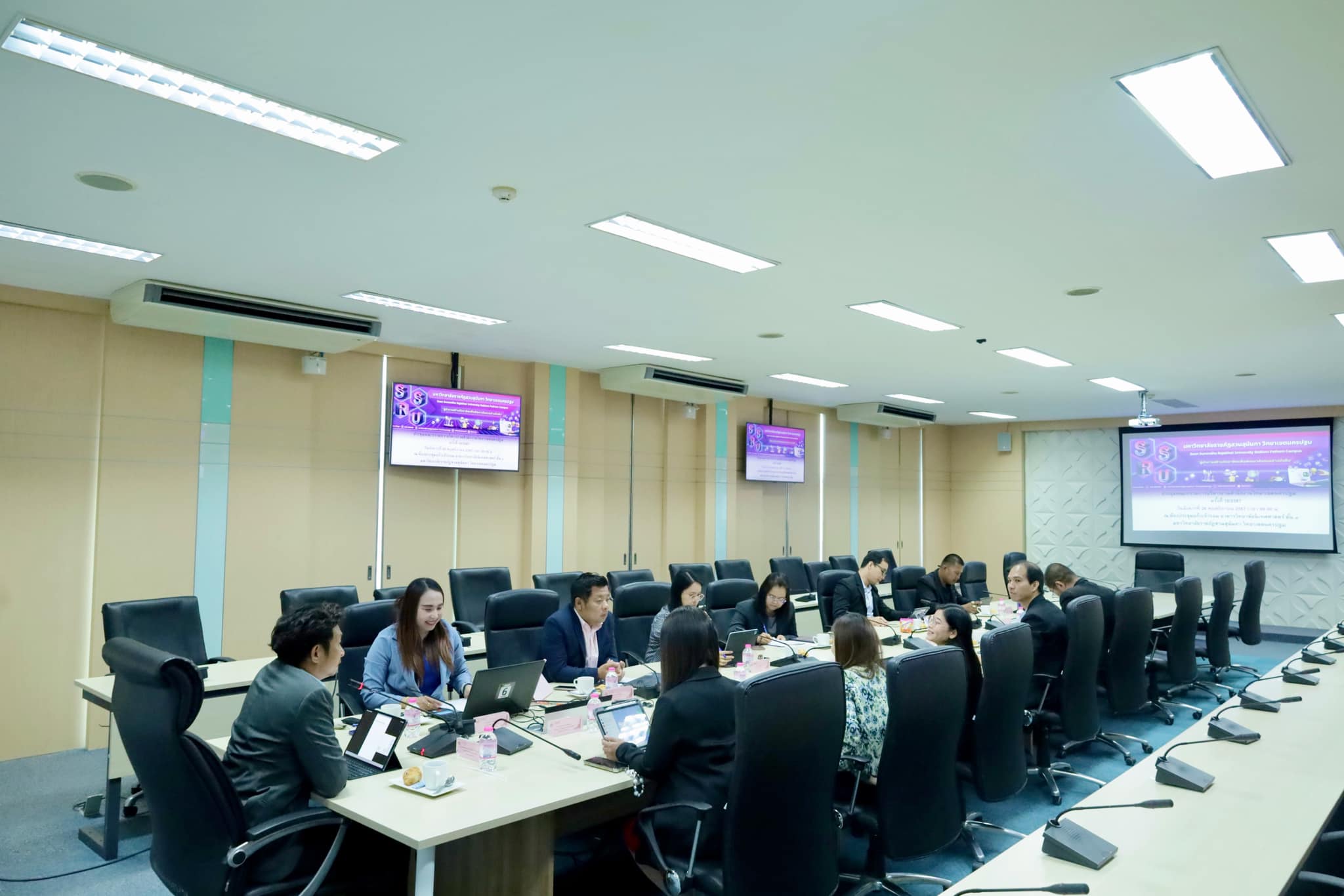 โดยมีผู้อำนวยการสำนักงานวิทยาเขตนครปฐม ผู้อำนวยการกอง และหัวหน้าฝ่ายเข้าร่วมการประชุม เพื่อติดตามความก้าวหน้าและหารือถึงการดำเนินงานของมหาวิทยาลัยฯ ในด้านต่างๆ ณ ห้องประชุมแก้วเจ้าจอม อาคารวิทยาลัยนิเทศศาสตร์ ชั้น 4 มหาวิทยาลัยราชภัฏสวนสุนันทา วิทยาเขตนครปฐม