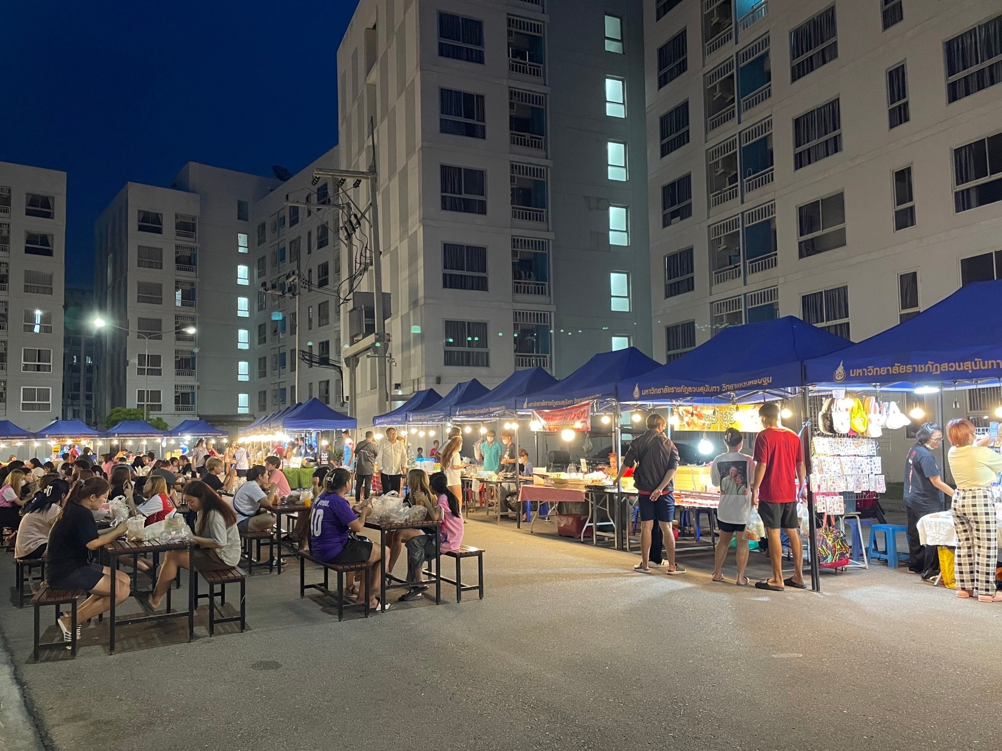 วันอังคาร ที่ 25 เมษายน 2566 เวลา 16.30 – 20.00 น. ฝ่ายทรัพย์สินและรายได้ มหาวิทยาลัยราชภัฏสวนสุนันทา วิทยาเขตนครปฐม จัดตลาดนัดที่หอหลังมอสวนนัน #วิทยาเขตนครปฐม ครั้งที่ 2 ณ บริเวณ ลานกว้างหอพักนักศึกษาภายในมหาวิทยาลัย โดยภายในงานพบกับ ร้านอาหารของกินอร่อยๆ ดนตรีสด จากนักศึกษาชมรมดนตรี และกิจกรรมสนุกสนาน อื่น ๆ อีกมากมายในงาน